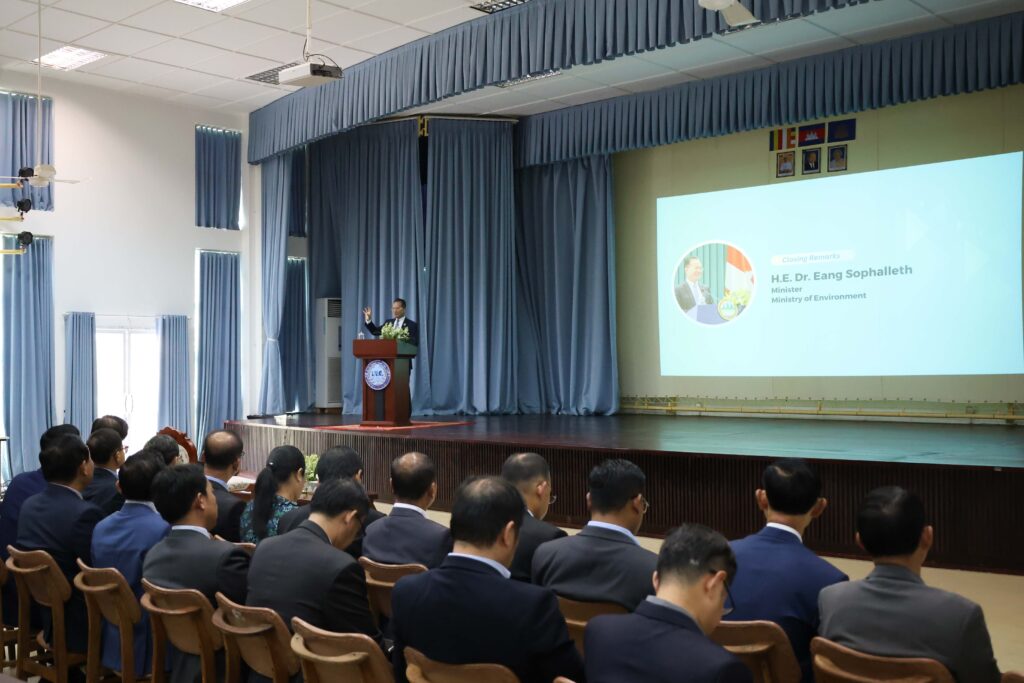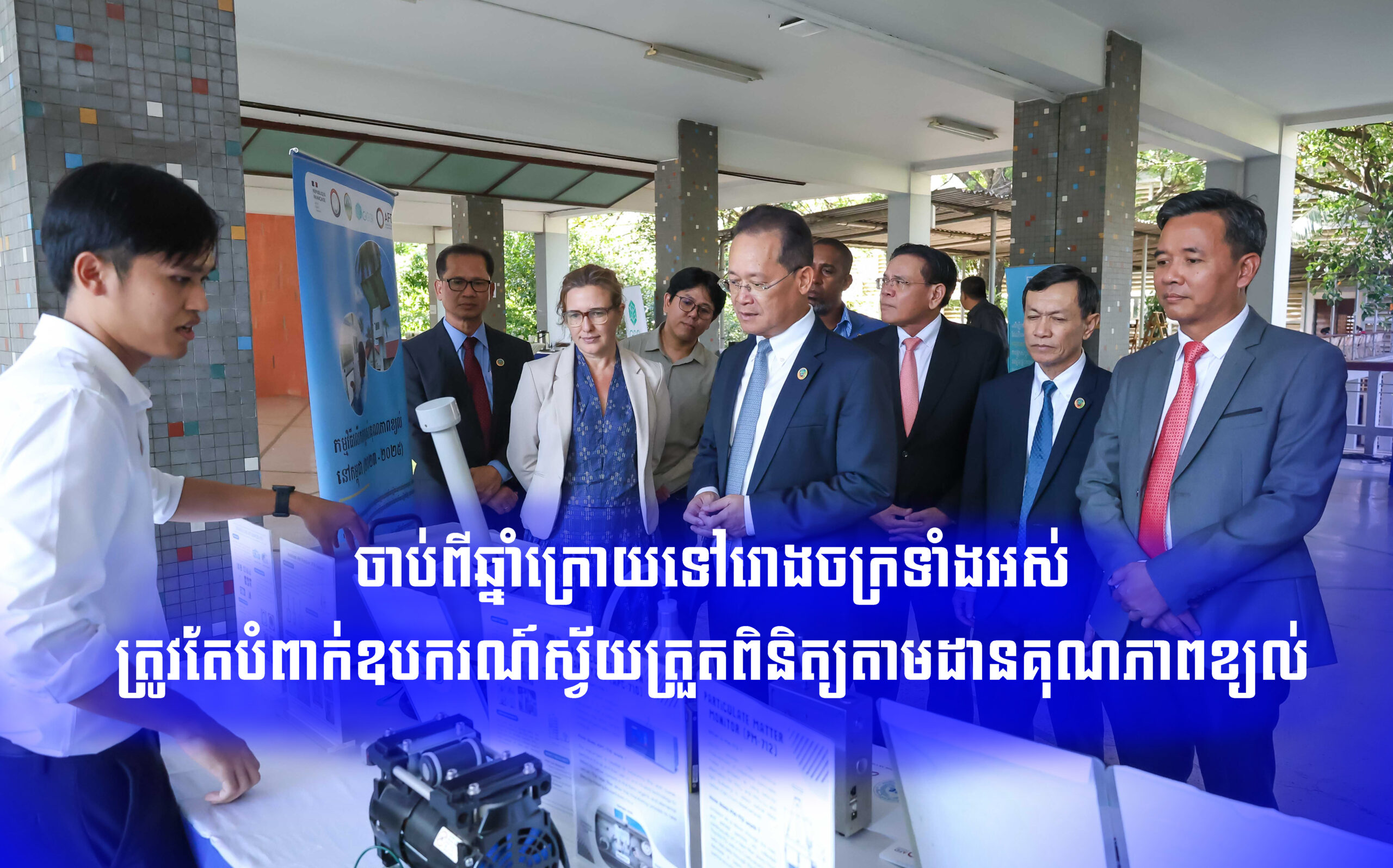 (ភ្នំពេញ)៖ ឯកឧត្តមបណ្ឌិត អ៊ាង សុផល្លែត រដ្ឋមន្រ្តីក្រសួងបរិស្ថាន ក្នុងឱកាសអញ្ជើញជាអធិបតីបិទយុទ្ធនាការប្រចាំឆ្នាំផ្ទៃមេឃពណ៌ខៀវ និង ការបញ្ចេញឧស្មន័ស្មើសូន្យឆ្នាំ២០៥០ នាថ្ងៃទី១៦ ខែតុលា ឆ្នាំ២០២៥ នៅវិទ្យាស្ថានបច្ចេកវិទ្យាកម្ពុជា បានមានប្រសាសន៍ថា នៅឆ្នាំ២០២៦ រោងចក្រទាំងអស់ត្រូវតែបំពាក់ឧបករណ៍ស្វ័យត្រួតពិនិត្យ តាមដានគុណភាពខ្យល់។ ក្រសួងបរិស្ថាន នឹងធ្វើការសហការជាមួយក្រសួងពាណិជ្ជកម្ម ចាត់វិធានការច្បាប់ ប្រសិនបើក្រុមហ៊ុនណាល្មើសគុណភាពខ្យល់ ឬធ្វើឱ្យខ្យល់របស់យើងមិនស្អាត។