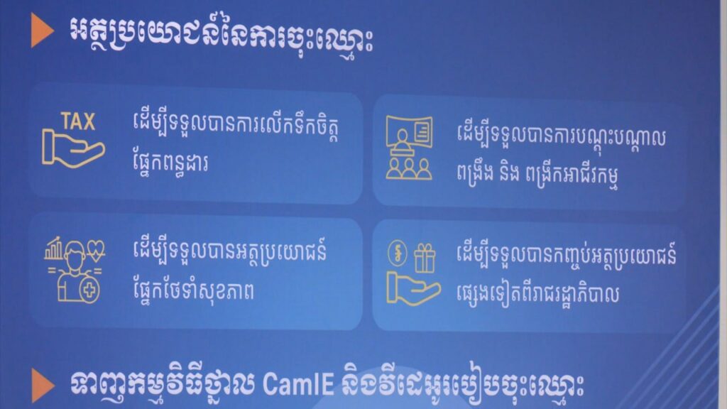 ឯកឧត្តម បញ្ជាក់ថា អត្ថប្រយោជន៍ដែលទទួលបានរាប់បញ្ចូលទាំងការ ការពារផ្លូវច្បាប់ ឱកាសទទួលបានហិរញ្ញប្បទាន ការប្រើប្រាស់សេវាហិរញ្ញវត្ថុផ្លូវការ ការលើកទឹកចិត្តផ្នែកពន្ធដារ និងការបណ្ដុះបណ្ដាលជាច្រើនទៀត។ ទន្ទឹមនឹងការបញ្ជាក់ពីអត្ថប្រយោជន៍ទាំងនេះ ឯកឧត្តម រដ្ឋលេខាធិការ បានលើកឡើងប្រាប់ទៅក្រុមការងារសម្របសម្រួលអភិវឌ្ឍសេដ្ឋកិច្ចក្រៅប្រព័ន្ធ ក៏ដូចជាមន្ទីរជួយបន្តផ្សព្វផ្សាយ ទៅដល់អ្នកប្រកបរបរសេដ្ឋកិច្ចក្រៅប្រព័ន្ធ ឱ្យបានយល់ពីអត្ថប្រយោជន៍នៃការចុះឈ្មោះ និងជួយសម្របសម្រួលបង្ហាត់បង្ហាញ អ្នកប្រកបរបរសេដ្ឋកិច្ចក្រៅប្រព័ន្ធឱ្យបានយល់ពីការចុះឈ្មោះតាមថ្នាលឌីជីថល។