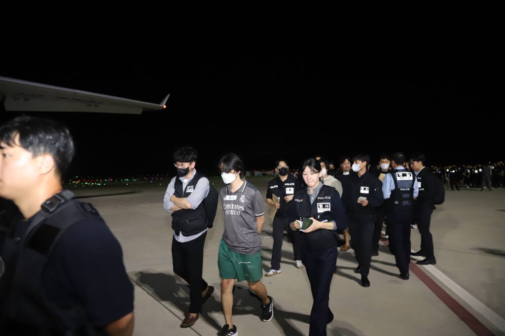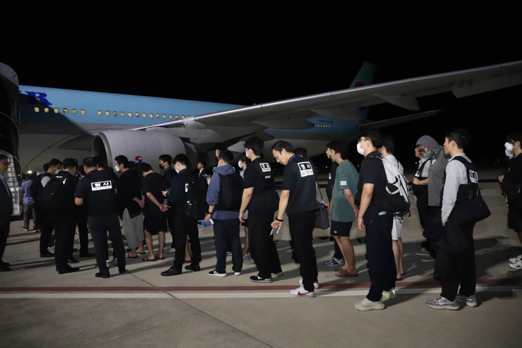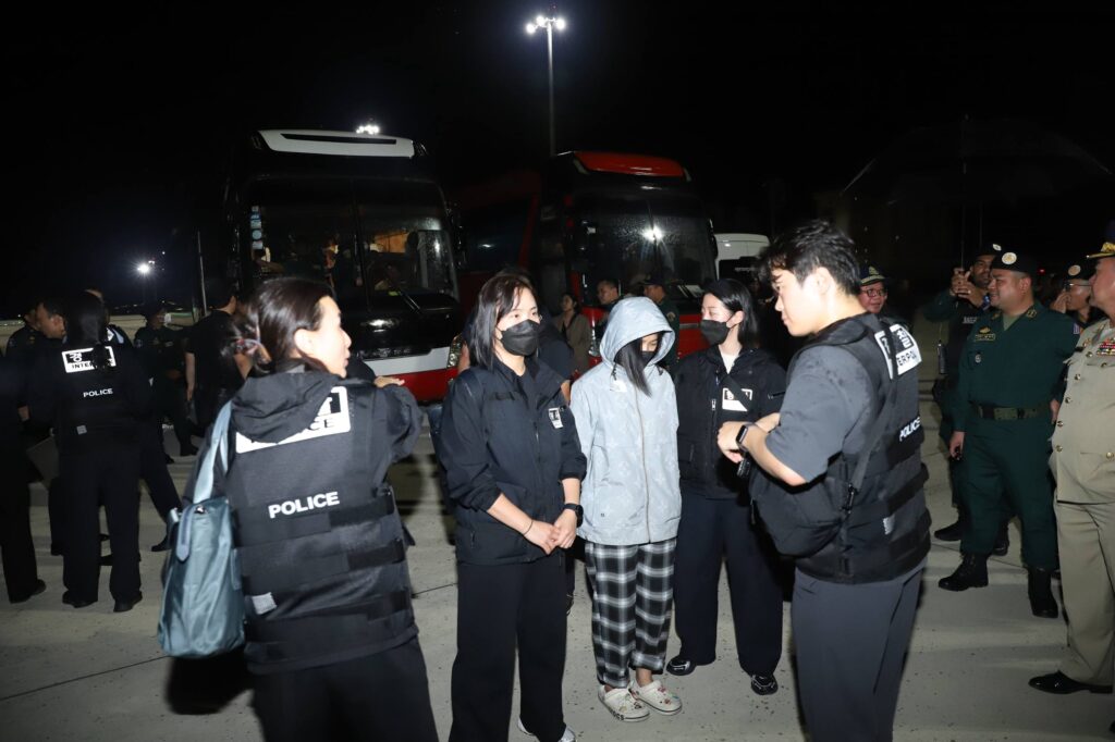 កណ្តាល៖ មន្ត្រីនៃអគ្គនាយកដ្ឋានអន្តោប្រវេសន៍ នៃក្រសួងមហាផ្ទៃប្រទេស កម្ពុជានៅយប់អាធ្រាតថ្ងៃទី១៧ ខែតុលា ឆ្នាំ២០២៥ បានបញ្ចូនជនជាតិកូរ៉េសរុបចំនួន ៦៤នាក់ ក្នុងនោះមានស្ត្រីចំនួន៥នាក់ ដែលជាប់ពាក់ព័ន្ធនឹងការឆបោកតាមប្រព័ន្ធបច្ចេកវិទ្យា ឱ្យត្រឡប់ទៅប្រទេសដើមរបស់ពួកគេវិញ ដើម្បីឱ្យរដ្ឋាភិបាលសាធារណរដ្ឋកូរ៉េ ចាត់វិធានការ និងអនុវត្តនីតិវិធីបន្ត។