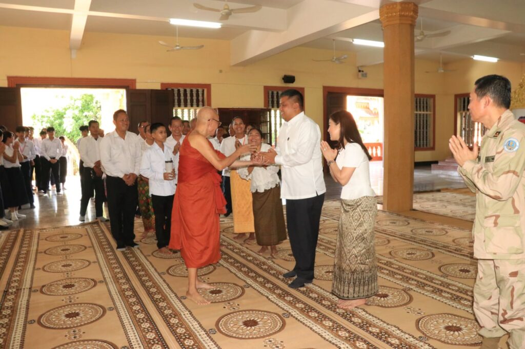 (សៀមរាប)៖ នៅព្រឹកថ្ងៃទី១៩ ខែតុលា ឆ្នាំ២០២៥ ឯកឧត្តម ឧត្តមនាវីឯក ទៀ សុខា មេបញ្ជាការកងទ័ពជើងទឹក និងជាអនុប្រធានប្រចាំការ អគ្គលេខាធិការ នៃគណៈកម្មាធិការជាតិសន្តិសុខលម្ហសមុទ្រ ព្រមជាមួយលោកជំទាវ និងក្រុមគ្រួសារ បាននាំយកទានជាគ្រឿងឧបភោគបរិភោគ និងបច្ច័យប្រគេនដល់ព្រះសង្ឃគង់ចាំព្រះវស្សានៅវត្តរាជបូណ៌ ខេត្តសៀមរាប។ ក្នុងឱកាសនោះ ឯកឧត្តមក៏បានជួបសំណេះសំណាល និងលើកទឹកចិត្តដល់សិស្សជាប់និទ្ទេស A ចំនួន ២៦នាក់ មកពីសាលា ២ ក្នុងសង្កាត់សាលាកំរើក។