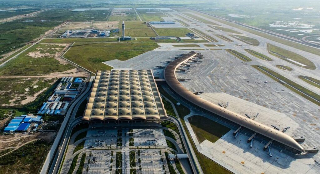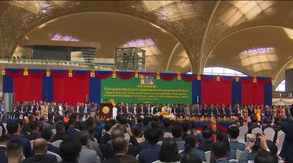 (កណ្ដាល)៖ អាកាសយានដ្ឋានអន្តរជាតិតេជោ លំដាប់ថ្នាក់ 4F តម្លៃជាង ២០០០លានដុល្លារ បានសម្ពោធជាផ្លូវការហើយនាព្រឹកថ្ងៃទី២០ ខែតុលា ឆ្នាំ២០២៥ ក្រោមអធិបតីភាពរបស់សម្តេចមហាបវរធិបតី ហ៊ុន ម៉ាណែត នាយករដ្ឋមន្ត្រី នៃព្រះរាជាណាចក្រកម្ពុជា និងលោកជំទាវបណ្ឌិត គឺចំថ្ងៃខួបកំណើត របស់សម្តេចគម្រប់៤៨ឆ្នាំ ឈានចូល ៤៩ឆ្នាំ។ អាកាសយានដ្ឋានអន្តរជាតិតេជោ (KTI) លំដាប់ថ្នាក់ 4F តម្លៃជាង២០០០លានដុល្លារនេះ បានធ្វើប្រតិបត្តិការទទួលជើងហោះហើរបានជាង១ខែ ពោល គឺចាប់តាំងពីថ្ងៃទី៩ ខែកញ្ញា ឆ្នាំ២០២៥មក ។