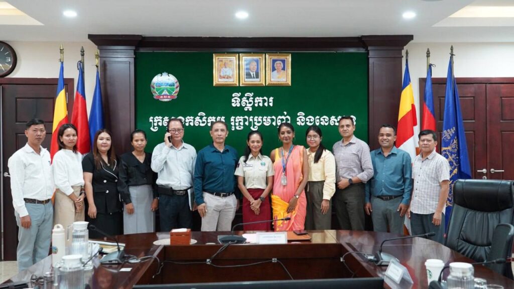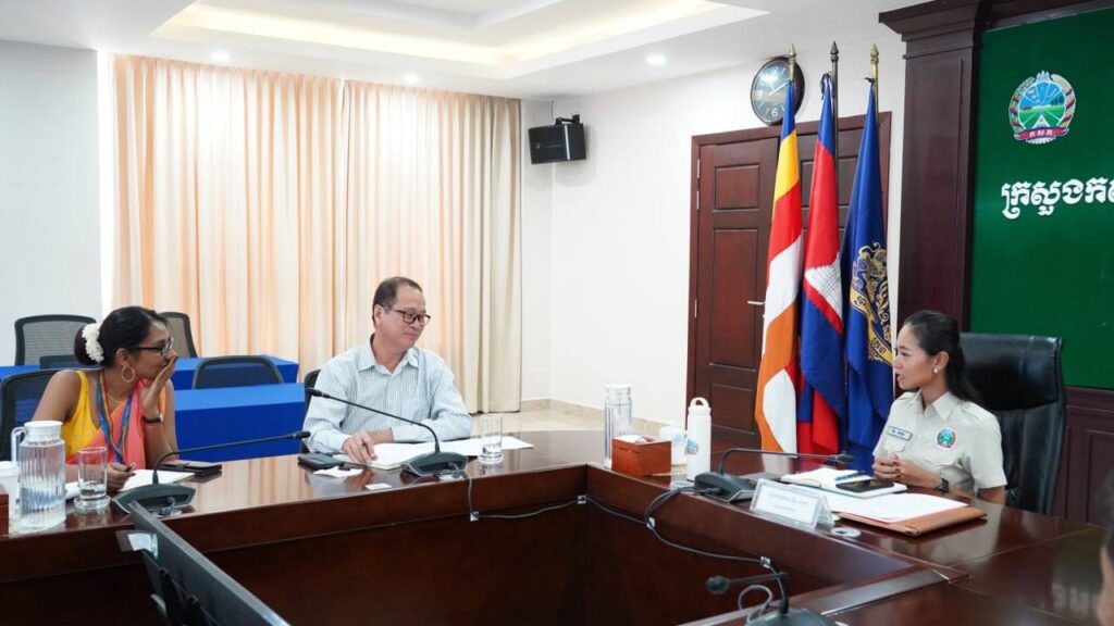 (ភ្នំពេញ)៖ លោកជំទាវ អ៊ឹម រចនា អនុរដ្ឋលេខាធិការក្រសួងកសិកម្ម រុក្ខាប្រមាញ់ និងនេសាទ បានជួបពិភាក្សាការងារជាមួយ អង្គការស្បៀង និងកសិកម្មនៃសហប្រជាជាតិ (FAO) ពីកិច្ចសហការត្រៀមរៀបចំទស្សនកិច្ចសិក្សាសម្រាប់អ្នកសារព័ត៌មាន អំពី វឌ្ឍនភាពស្តីពី «ការធ្វើឌីជីថលនៃការគ្រប់គ្រងជលផលសមុទ្រនៅកម្ពុជា» នៅខេត្តព្រះសីហនុ។
