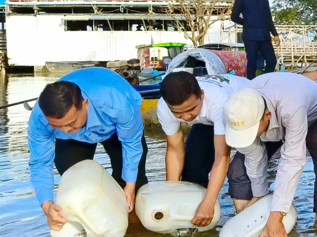 ពិធីលែងកូនត្រីពូជបានប្រព្រឹត្តទៅក្រោមវត្តមាន ឯកឧត្តម សេន សុវណ្ណ រដ្ឋលេខាធិការក្រសួងកសិកម្ម រុក្ខាប្រមាញ់ និងនេសាទ លោក ទូច គង្គា អភិបាលរងខេត្តស្ទឹងត្រែងលោក ទុំ នីរ៉ូ ប្រធានមន្ទីរកសិកម្ម រុក្ខាប្រមាញ់ និងនេសាទខេត្ត លោក ប្រាក់ ទិត ប្រធានមជ្ឈមណ្ឌលស្រាវជ្រាវ និងផលិតពូជវារីសត្វមេគង្គលើ និងមន្ត្រីពាក់ព័ន្ធកាលពីរសៀលថ្ងៃទី២០ ខែតុលា ឆ្នាំ២០២៥ នៅភូមិបាដើម ឃុំសាមឃួយ ស្រុកសេសាន ខេត្តស្ទឹងត្រែង ។