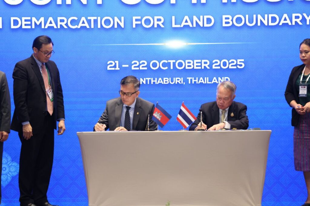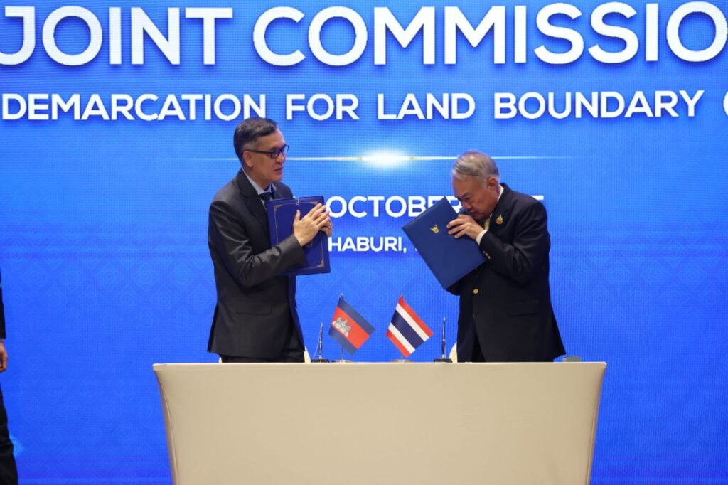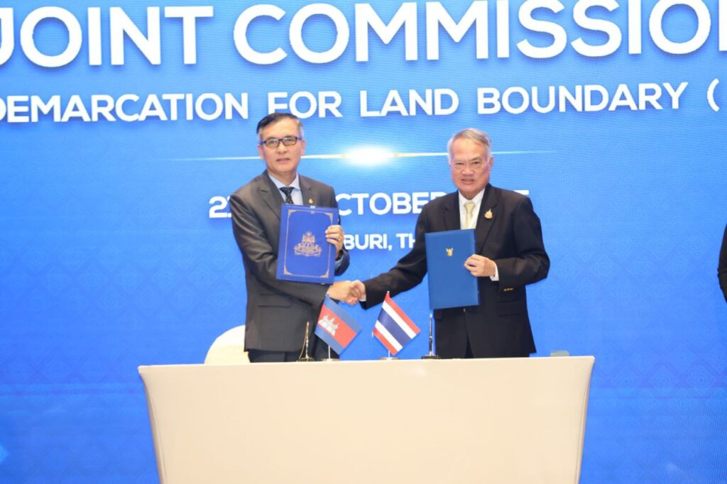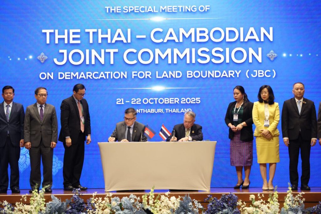 (ភ្នំពេញ)៖ កិច្ចប្រជុំពិសេសគណៈកម្មការចម្រុះខណ្ឌសីមាព្រំដែនគោក (JBC) កម្ពុជា-ថៃ ខេត្តចន្ទបុរី, ព្រះរាជាណាចក្រថៃ, ថ្ងៃទី២១-២២ ខែតុលា ឆ្នាំ២០២៥ ភាគីទាំងពីរឯកភាពគ្នាលើការប្រកាសព័ត៍មានរួមចំនួន៧សំខាន់រួមមាន៖