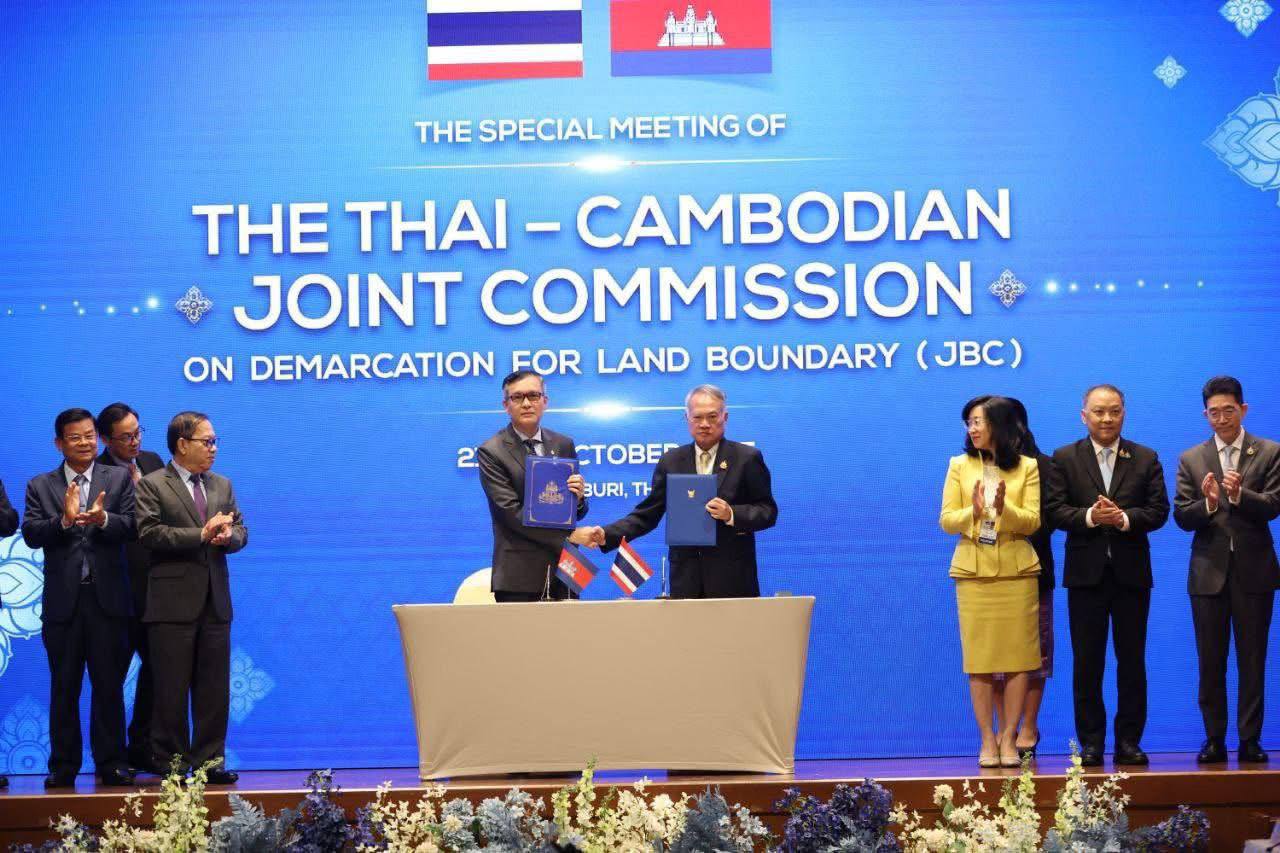 គួរបញ្ជាក់ថា កិច្ចប្រជុំពិសេសគណៈកម្មការចម្រុះខណ្ឌសីមាព្រំដែនគោក (JBC) កម្ពុជា-ថៃ បានធ្វើឡើងនៅខេត្តចន្ទបុរី នៅថ្ងៃទី២១-២២ ខែតុលា ឆ្នាំ២០២៥។ គណៈប្រតិភូកម្ពុជាដឹកនាំដោយ ឯកឧត្តម ឡាំ ជា រដ្ឋមន្ត្រី ទទួលបន្ទុករដ្ឋលេខាធិការដ្ឋានកិច្ចការព្រំដែននៃព្រះរាជាណាចក្រកម្ពុជា និងជាសហប្រធានគណៈកម្មការ ចម្រុះខណ្ឌសីមាព្រំដែនគោក (JBC) កម្ពុជា-ថៃ (ភាគីកម្ពុជា)។ គណៈប្រតិភូថៃដឹកនាំដោយឯកឧត្តម Prasas Prasasvinitchai ទីប្រឹក្សាក្រសួងការបរទេសនៃព្រះរាជាណាចក្រថៃ និងជាសហប្រធាន គណៈកម្មការចម្រុះខណ្ឌសីមាព្រំដែនគោក (JBC) ថៃ-កម្ពុជា (ភាគីថៃ)។