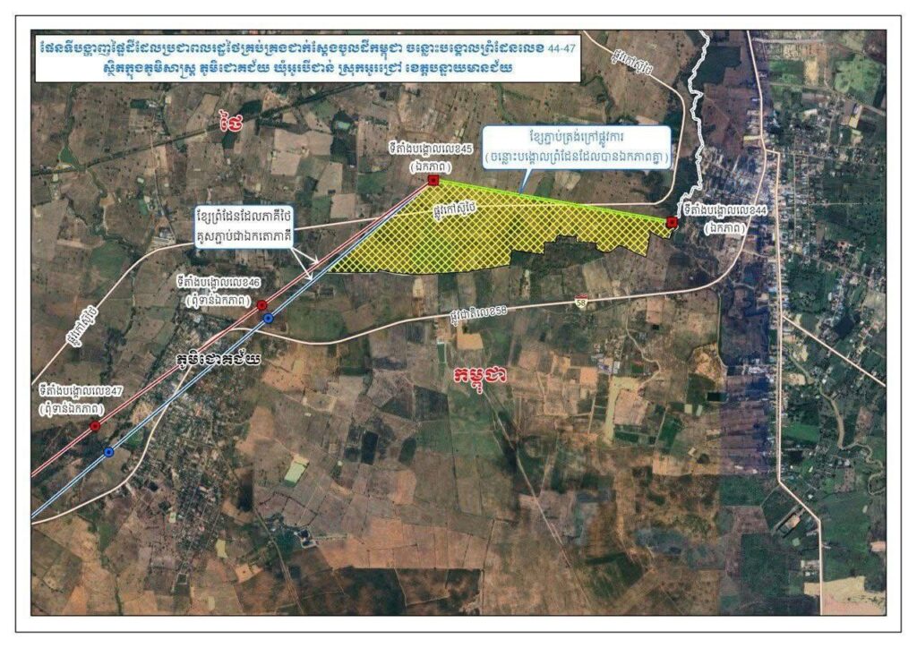 នៅក្នុងន័យនេះ ការងារវាស់វែង និងខណ្ឌសីមា គឺស្ថិតនៅក្រោមសមត្ថកិច្ចរបស់គណ:កម្មាធិការព្រំដែនចម្រុះកម្ពុជា-ថៃ (JBC) ហើយដែលត្រូវដោះស្រាយដោយសន្តិវិធី ស្របតាមសន្ធិសញ្ញា អនុសញ្ញា និងកិច្ចព្រមព្រៀងដែលមានស្រាប់រវាងប្រទេសទាំងពីរ កម្ពុជានិងថៃ។ JBC បានធ្វើការរួមគ្នាប្រកបដោយផ្លែផ្កា ជាច្រើនក្នុងរយៈពេលជាង ២០ឆ្នាំកន្លងមកនេះ ទោះបីមិនទាន់បានចប់សព្វគ្រប់ក៏ដោយ។