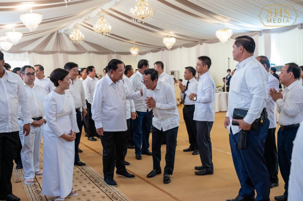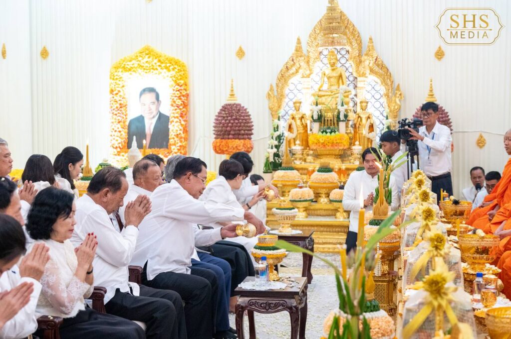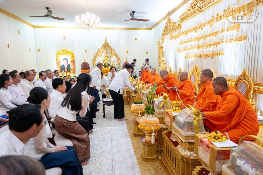 (ភ្នំពេញ)៖ នៅរសៀលថ្ងៃទី២៤ ខែតុលា ឆ្នាំ២០២៥ សម្ដេចអគ្គមហាសេនាបតីតេជោ ហ៊ុន សែនប្រធានព្រឹទ្ធសភា នៃព្រះរាជាណាចក្រកម្ពុជា បានអញ្ជើញចូលរួមក្នុងពិធីបុណ្យរំលឹកខួបមួយឆ្នាំនៃមរណភាពរបស់ ឯកឧត្តម ជា ចាន់តូ តំណាងរាស្រ្តមណ្ឌលខេត្តកំពង់ធំ និងជាអគ្គទេសាភិបាលកិត្តិយសធនាគារជាតិនៃកម្ពុជា ដែលបានទទួលមរណៈភាពកាលពីថ្ងៃទី២៥ ខែតុលា ឆ្នាំ២០២៤ វេលាម៉ោង ១០:៣០នាទីព្រឹក ក្នុងជន្មាយុ ៧៣ឆ្នាំ ដោយរោគាពាធ។