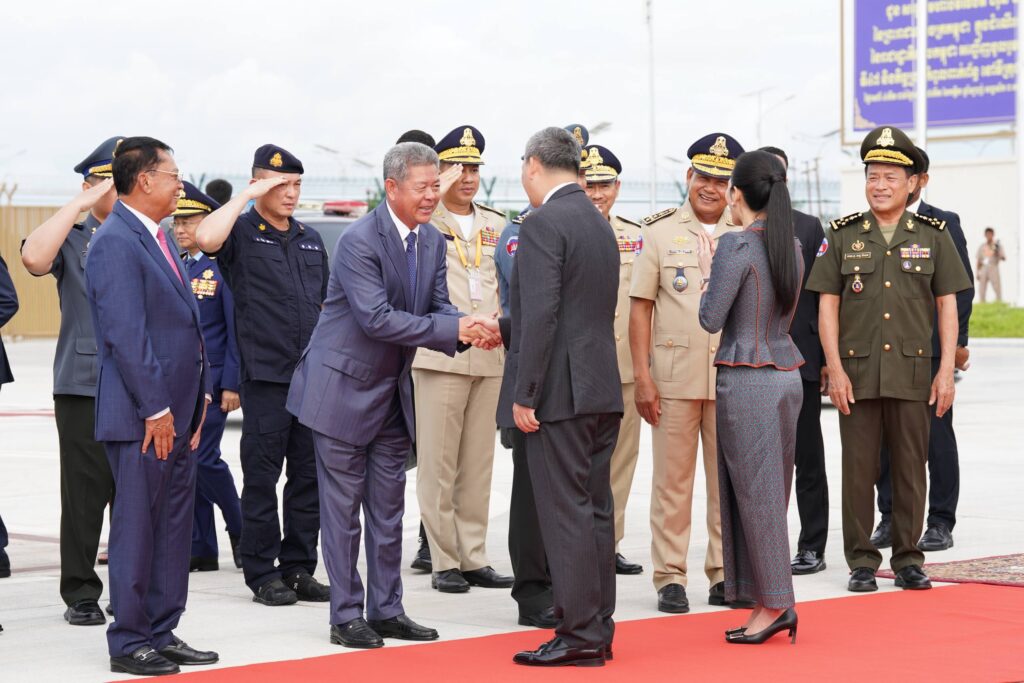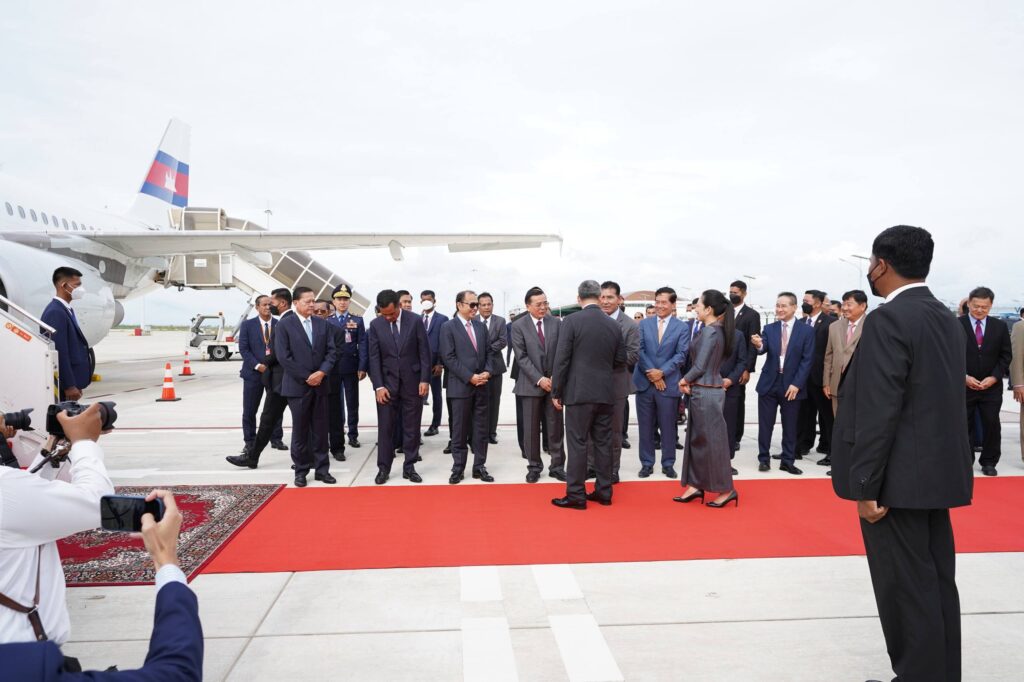 អញ្ជើញអមដំណើរសម្ដេចធិបតី និងលោកជំទាវបណ្ឌិត ពេជ ចន្ទមុន្នី ហ៊ុនម៉ាណែត រួមមាន៖ ឯកឧត្តម ប្រាក់ សុខុន ឧបនាយករដ្ឋមន្ត្រី និងជារដ្ឋមន្ត្រីការបរទេស និងសហប្រតិបត្តិការអន្តរជាតិ រួមជាមួយឧបនាយករដ្ឋមន្តី ទេសរដ្ឋមន្ត្រី រដ្ឋមន្ត្រី និងមន្ត្រីជាន់ខ្ពស់រដ្ឋាភិបាល ព្រមទាំងតំណាងធុរកិច្ច មកពីសភាពាណិជ្ជកម្មកម្ពុជា និងសមាគមឧកញ៉ាកម្ពុជា ។