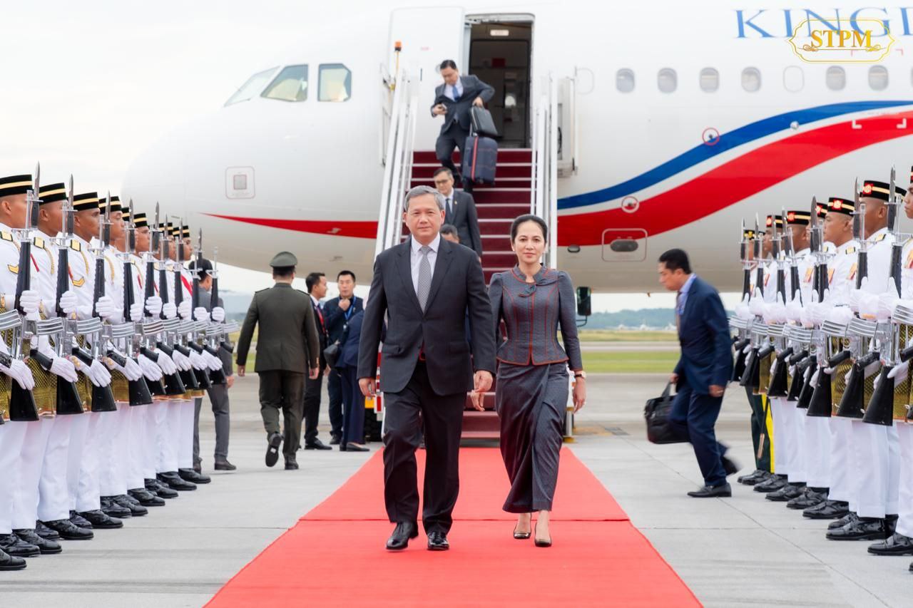 (គូឡាឡាំពួ)៖ សម្តេចមហាបវរធិបតី ហ៊ុន ម៉ាណែត នាយករដ្ឋមន្ត្រីនៃព្រះរាជាណាចក្រណាចក្រកម្ពុជា និងលោកជំទាវបណ្ឌិត ពេជ ចន្ទមុន្នី ដឹកនាំគណៈប្រតិភូជាន់ខ្ពស់អញ្ជើញដល់អាកាសយានដ្ឋានអន្តរជាតិគូឡាឡាំពួ ប្រកបដោយសុវត្ថិភាព ដោយមានការទទួលស្វាគមន៍ពីសំណាក់ ឯកឧត្តមបណ្ឌិត Datuk Seri Haji Dzulkefly bin Ahmad រដ្ឋមន្ត្រីក្រសួងសុខាភិបាល នៃប្រទេសម៉ាឡេសុី នារសៀលថ្ងៃទី២៥ ខែតុលា ឆ្នាំ២០២៥។