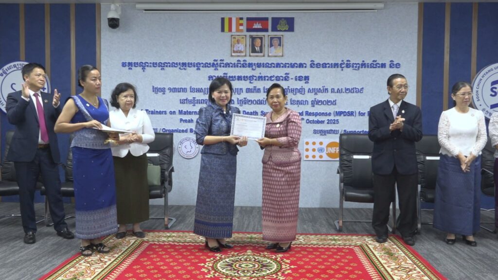 នេះជាប្រប្រសាសន៍ណែនាំ របស់ លោកជំទាវ អ៊ឹម សិទ្ធិការ្យ ខណៈតំណាង ឯកឧត្តមសាស្ត្រាចារ្យ ឈាង រ៉ា រដ្ឋមន្ត្រីក្រសួងសុខាភិបាល កាលពីរសៀលថ្ងៃទី២៤ ខែតុលា ឆ្នាំ២០២៥ ក្នុងកម្មវិធីបិទវគ្គ បណ្តុះបណ្តាលគ្រូបង្គោល ស្តីពីការពិនិត្យមរណភាពមាតា និង ទារកជុំវិញកំណើត និងការឆ្លើយតបសម្រាប់ថ្នាក់រាជធានី ខេត្ត នៅមន្ទីរពេទ្យព្រះអង្គឌួង។