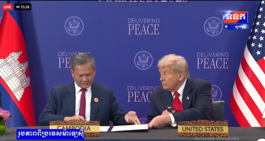 តាងនាមប្រជាជនកម្ពុជា សម្តេចធិបតីនាយករដ្ឋមន្ត្រី ហ៊ុន ម៉ាណែត បានថ្លែងអំណរគុណយ៉ាងជ្រាលជ្រៅបំផុតចំពោះឯកឧត្តមប្រធានាធិបតី Donald J. Trump ក្នុងភាពជាអ្នកដឹកនាំដ៏ម៉ឹងម៉ាត់ និងការប្តេជ្ញាចិត្តយ៉ាងខ្ជាប់ខ្ជួនក្នុងការគាំទ្រសន្តិភាពជានិរន្តន៍រវាងកម្ពុជានិងថៃ និងចំពោះកិច្ចខិតខំប្រឹងប្រែងដោយមិនគិតពីការនឿយហត់ក្នុងការជួយធ្វើឱ្យសមិទ្ធផលនេះក្លាយជាការពិត ។