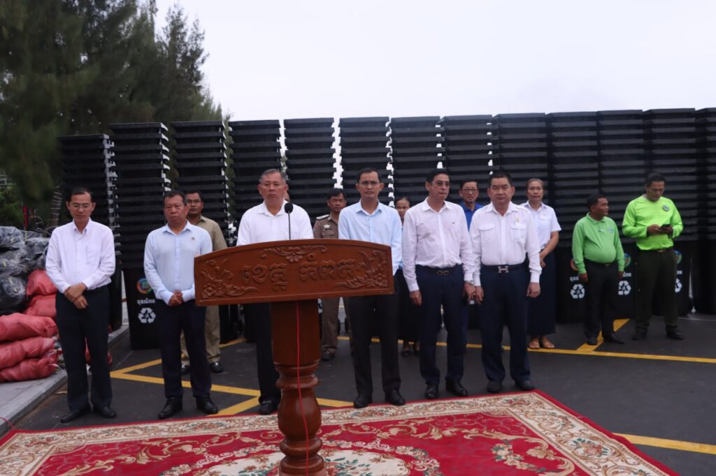 ឯកឧត្តម សាបូ អូហ្សាណូ រដ្ឋលេខាធិការនិងជាតំណាងឯកឧត្តមបណ្ឌិត អ៊ាង សុផល្លែត រដ្ឋមន្រ្តីក្រសួងបរិស្ថាន បានអញ្ជើញចូលរួមជាអធិបតី និងបានប្រគល់ធុងសំរាមជានិមិត្តរូបជូនទៅ រដ្ឋបាលខេត្តកំពត តំណាងដោយ ឯកឧត្តម មឿង គង្គារ អភិបាលរង នៃគណៈអភិបាលខេត្តកំពត និងមានការចូលរួមពីថ្នាក់ដឹកនាំនិងមន្រ្តីរាជការក្រសួងបរិស្ថាន មន្ទីរបរិស្ថានខេត្តកំពត មន្ទីរ អង្គភាព ព្រះសង្ឃ និងប្រជាពលរដ្ឋជាច្រើននាក់ នៅក្រុងកំពត ខេត្តកំពត។