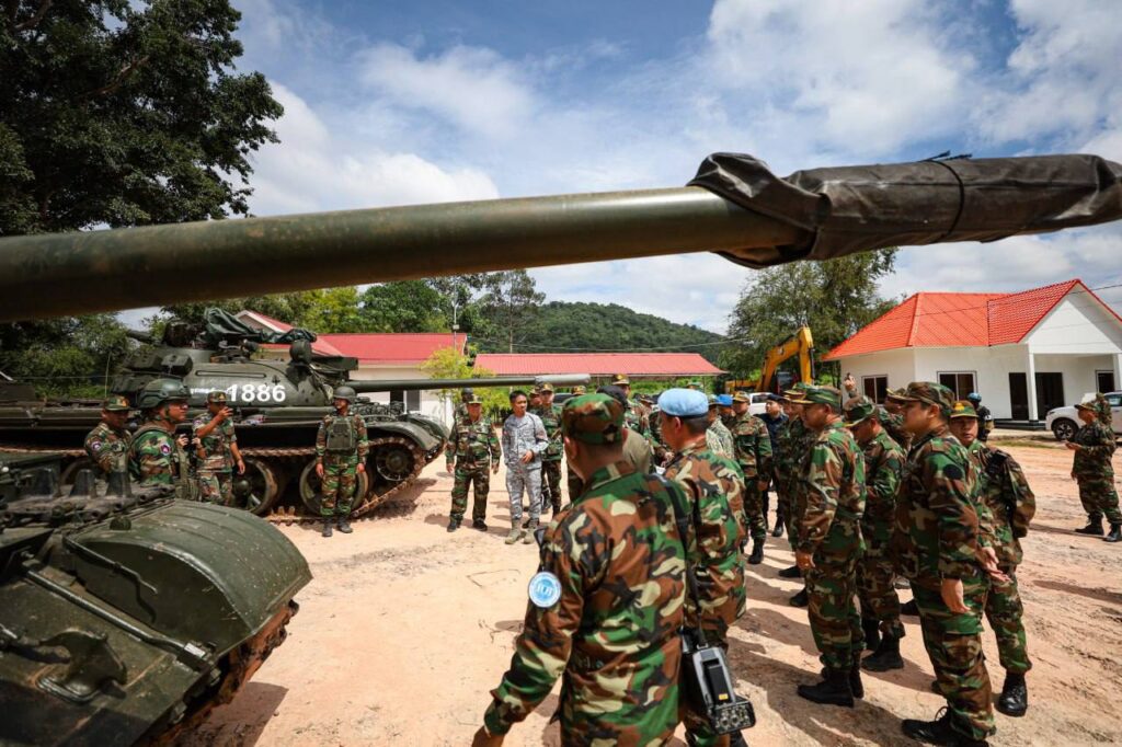 ក្រុមអ្នកសង្កេតការណ៍អាស៊ាន (AOT)ចុះត្រួតពិនិត្យសព្វាវុធ ដែលបានត្រឡប់មកកាន់បន្ទាយ ដែលស្ថិតក្នុងស្រុកបន្ទាយស្រី ខេត្តសៀមរាបវិញ បន្ទាប់ពីបានចាកចេញពីតំបន់ជម្លោះព្រំដែនកម្ពុជា-ថៃ