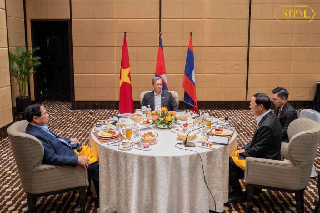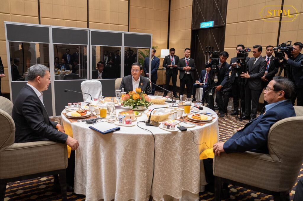 (គូឡាឡាំពួ)៖ សម្តេចមហាបវរធិបតី ហ៊ុន ម៉ាណែត នាយករដ្ឋមន្រ្តី នៃព្រះរាជាណាចក្រកម្ពុជា បានរៀបចំអាហារពេលព្រឹកការងារ ជាមួយ ឯកឧត្តម ផាម មិញ ជិញ (Pham Minh Chinh) នាយករដ្ឋមន្រ្តីនៃសាធារណរដ្ឋសង្គមនិយមវៀតណាម និង ឯកឧត្តម សនសៃ ស៊ីផាន់ដន (Sonexay Siphandone) នាយករដ្ឋមន្រ្តីនៃសាធារណរដ្ឋប្រជាធិបតេយ្យប្រជាមានិតឡាវ នាព្រឹកថ្ងៃទី២៧ ខែតុលា ឆ្នាំ២០២៥ ក្នុងឱកាសចូលរួមកិច្ចប្រជុំកំពូលអាស៊ាន លើកទី៤៧ និងកិច្ចប្រជុំកំពូលពាក់ព័ន្ធ នៅទីក្រុងគូឡាឡាំពួ ប្រទេសម៉ាឡេស៊ី ពីថ្ងៃទី២៦-២៨ ខែតុលា ឆ្នាំ២០២៥។