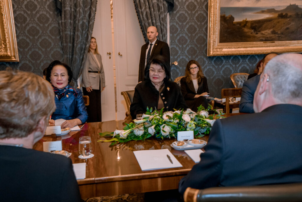 ក្នុងឱកាសបំពេញទស្សនកិច្ចផ្លូវការនៅប្រទេសហុងគ្រី នៅថ្ងៃទី២៧ ខែតុលា ឆ្នាំ២០២៥ សម្តេចមហារដ្ឋសភាធិការធិបតី ឃួន សុដារី ប្រធានរដ្ឋសភា បានចូលជួបសម្តែងការគួរសម និងពិភាក្សាការងារជាមួយ ឯកឧត្ដម តាម៉ាស ស៊ូលយ៉ូក (Tamás Sulyok) ប្រធានាធិបតីហុងគ្រី។