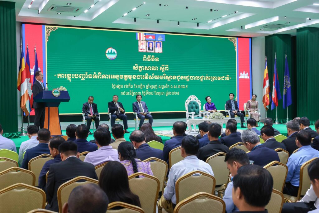 (ភ្នំពេញ)៖ «ការចូលរួមរបស់រដ្ឋបាលថ្នាក់ក្រោមជាតិ ក្នុងការដោះស្រាយបញ្ហាបរិស្ថាននៅតាមមូលដ្ឋាន ជាពិសេសការចូលរួមជំរុញសកម្មភាពនៃយុទ្ធនាការនានារបស់ក្រសួងបរិស្ថាន គឺជាសក្ខីភាពមួយ នៃការអនុវត្តគោលនយោបាយវិមជ្ឈកា និងវិសហមជ្ឈកា ដែលក្រសួងបរិស្ថានគាំទ្រការជំរុញប្រសិទ្ធភាព នៃការបំពេញតួនាទី និងភារកិច្ច ប្រកបដោយការទទួលខុសត្រូវ របស់រដ្ឋបាលថ្នាក់ក្រោមជាតិ»។ នេះជាប្រសាសន៍លើកឡើង របស់ឯកឧត្តមបណ្ឌិត អ៊ាង សុផល្លែត រដ្ឋមន្រ្តីក្រសួងបរិស្ថាន ក្នុងឱកាសអញ្ជើញជាអធិបតី ក្នុងពិធីបិទសិក្ខាសាលាឆ្លុះបញ្ចាំង ស្តីពីការអនុវត្តមុខងារវិស័យបរិស្ថាន ជូនរដ្ឋបាលថ្នាក់ក្រោមជាតិ នារសៀលថ្ងៃទី២៨ ខែតុលា ឆ្នាំ២០២៥ នៅទីស្តីការក្រសួងបរិស្ថាន។