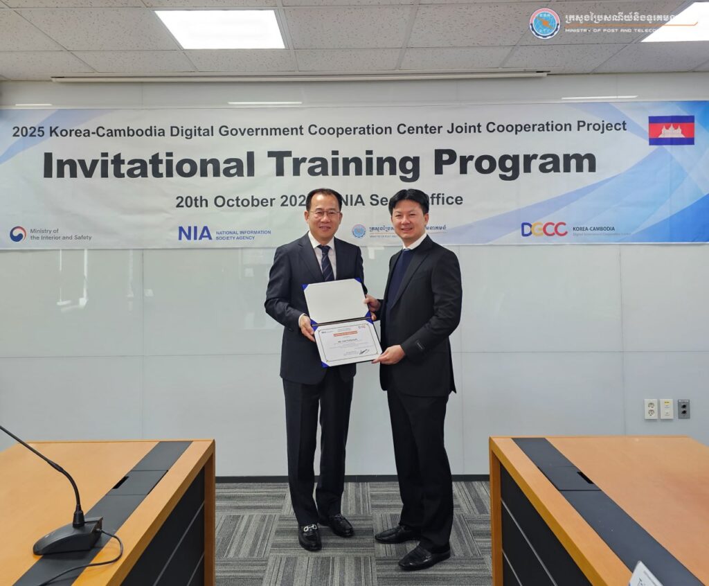 (ទីក្រុងសេអ៊ូល)៖ ថ្ងៃទី២០-២៤ ខែតុលា ឆ្នាំ២០២៥ ឯកឧត្តម សុខ ពុទ្ធិវុធ រដ្ឋលេខាធិការក្រសួងប្រៃសណីយ៍និងទូរគមនាគមន៍ បានដឹកនាំគណៈប្រតិភូចូលរួមវគ្គបណ្តុះបណ្តាលស្តីពីអភិបាលកិច្ចទិន្នន័យនិងទិន្នន័យបើកចំហ នៅទីក្រុងសេអ៊ូល សាធារណរដ្ឋកូរ៉េ ដែលរៀបចំឡើងដោយមជ្ឈមណ្ឌលកិច្ចសហប្រតិបត្តិការរដ្ឋាភិបាលឌីជីថល កម្ពុជា-កូរ៉េ នៃភ្នាក់ងារជាតិព័ត៌មានរបស់ក្រសួងមហាផ្ទៃនិងសុវត្ថិភាពនៃសាធារណរដ្ឋកូរ៉េ។