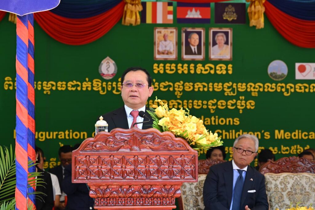 ឯកឧត្តមសាស្រ្តាចារ្យរដ្ឋមន្រ្តី ថ្លែងអំណរគុណយ៉ាងជ្រាលជ្រៅជូនចំពោះរដ្ឋាភិបាល និងប្រជាជនជប៉ុន ជាពិសេសស្ថាបនិក បុគ្គលិកនៃអង្គការបេះដូងជប៉ុន ដែលបានកៀរគរថវិកាពីសប្បុរសជនជប៉ុន និងសប្បុរសជនកម្ពុជា ដែលបានសាងសង់អគារមជ្ឈមណ្ឌលព្យាបាលកុមារអាស៊ីនៃអង្គការបេះដូងជប៉ុន ជូនប្រជាពលរដ្ឋក្នុងខេត្តកណ្ដាល និងខេត្តផ្សេងទៀតជាប់នឹងខេត្តកណ្ដាល។