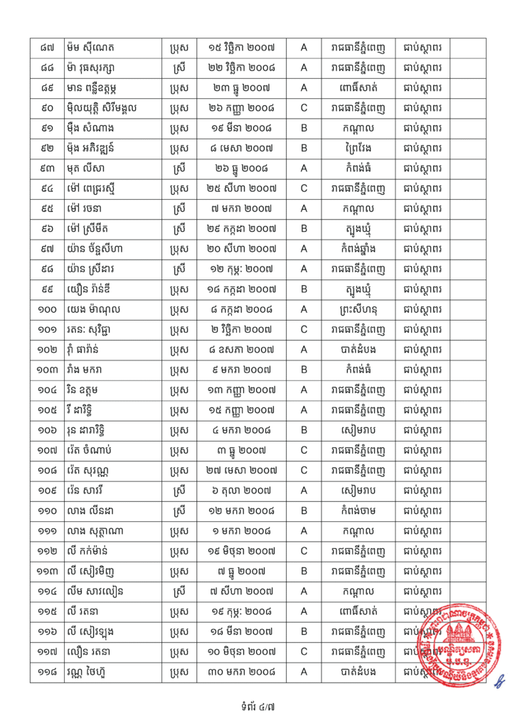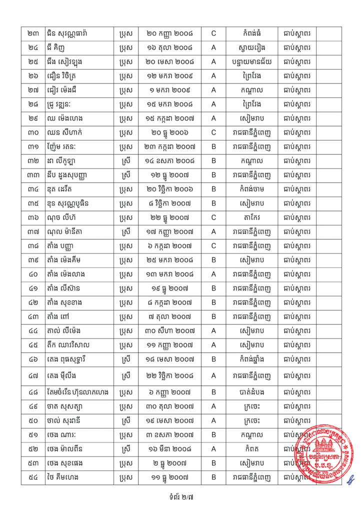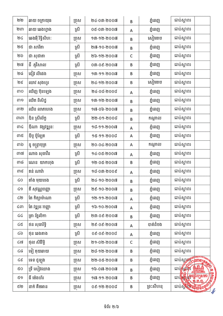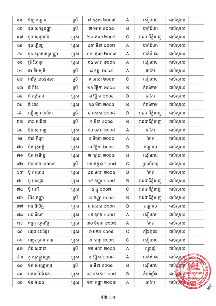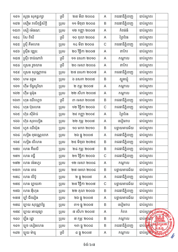 លទ្ធផលការប្រឡងជ្រើសរើសនិស្សិតអាហារូបករណ៍ទេពកោសល្យឌីជីថលតេជោ សិក្សាថ្នាក់បរិញ្ញាបត្របច្ចេកវិទ្យាឌីជីថល សម្រាប់ឆ្នាំសិក្សា ២០២៥-២០២៦