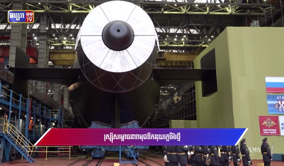 មូស្គូ ៖ រុស្ស៊ីបាននិយាយថា ខ្លួនបានដាក់ឲ្យដំណើរការ នាវាមុជទឹកនុយក្លេអ៊ែរ ដឹកយន្តហោះគ្មានមនុស្សបើក ប្រភេទថ្មី។