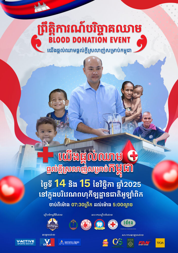 លោកថា កម្មវិធីបរិច្ចាគឈាមដែលផ្តួចផ្តើមដោយក្រុមបាល់ទាត់ពិធីករកីឡាកម្ពុជាដែលមានឯកឧត្តម ហ៊ុន ម៉ានី ប្រធានសហភាពសហព័ន្ធយុវជនកម្ពុជា ជាប្រធានកិត្តិយស នឹងធ្វើឡើងរយៈពេល២ថ្ងៃ .ថ្ងៃទី១៤ដល់១៥ ខែ វិច្ឆិកា ឆ្នាំ២០២៥។ វាជាលើកទី៣ហើយ បន្ទាប់កម្មវិធីបរិច្ចាគឈាមធំៗ២លើកកន្លងមកទទួលបានជោគជ័យលើសការរំពឹងទុកទៅទៀត។