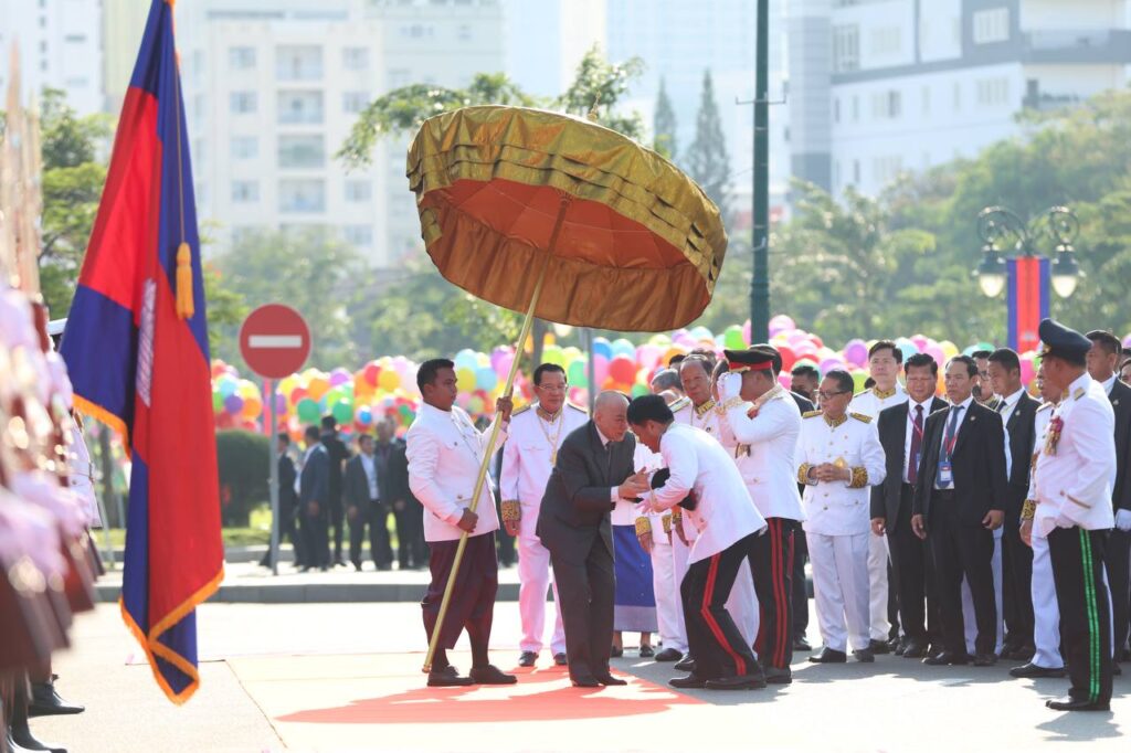 ពិធីអបអរសាទរខួបនៃការដណ្តើមបានឯករាជ្យ មានការអញ្ជើញដង្ហែព្រះករុណា ព្រះមហាក្សត្រ ដោយថ្នាក់ដឹកនាំកំពូលៗរបស់ជាតិ មានដូចជា សម្តេចតេជោ ហ៊ុន សែន ប្រធានព្រឹទ្ធសភា សម្តេចមហាធិការធិបតី ឃួន សុដារី ប្រធានរដ្ឋសភា សម្តេចមហាបវរធិបតី ហ៊ុន ម៉ាណែត នាយករដ្ឋមន្ត្រីកម្ពុជា ហើយក៏មានការអញ្ជើញចូលរួមពីឯកអគ្គរាជទូត រដ្ឋទូត នៃបណ្តាប្រទេសនានា មន្ត្រីរាជការតាមក្រសួងស្ថាប័ននានា សិស្សានុសិស្ស យុវជន និងប្រជាពលរដ្ឋជាច្រើនរូបទៀត ។