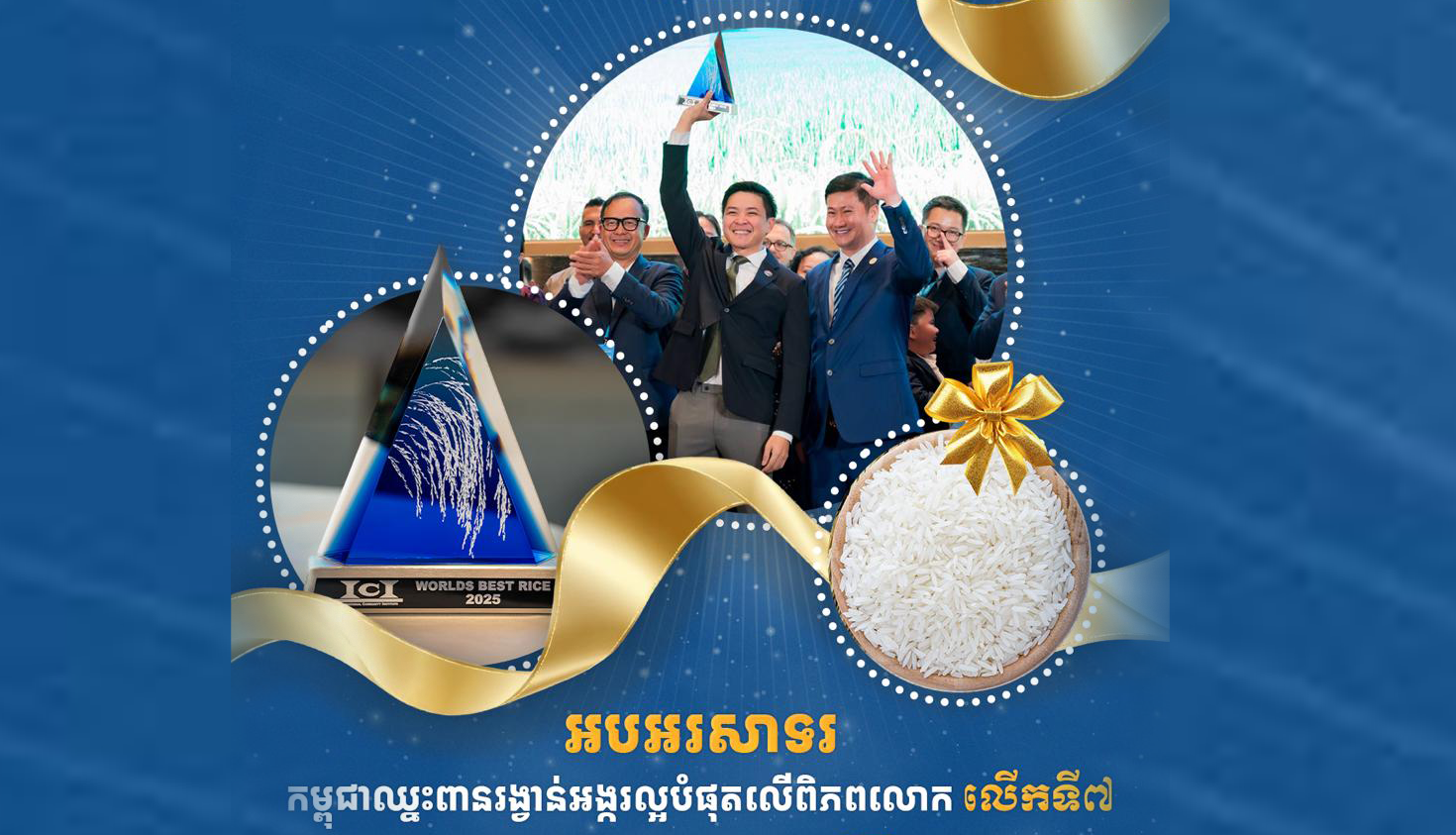 ជាកិត្តិយសរបស់ប្រទេសកម្ពុជា ដែលអង្ករក្រអូបប្រណិតកម្ពុជា ម៉ាកវិញ្ញាតកម្ម « ម្លិះអង្គរ » ពូជស្រូវផ្ការំដួល បានឈ្នះពានរង្វាន់ជាអង្ករប្រណិតល្អបំផុត លើពិភពលោក ជាលើកទី៧ ក្នុងការប្រកួតអង្ករល្អបំផុតលើពិភពលោក (World Best Rice) នៅក្នុងកម្មវិធី «សន្និសីទស្រូវអង្ករពិភពលោកឆ្នាំ២០២៥» ដែលរៀបចំដោយ The Rice Trader រយៈពេល ៣ថ្ងៃ ចាប់ពីថ្ងៃទី៧-៩ ខែវិច្ឆិកា ឆ្នាំ២០២៥ នៅរាជធានីភ្នំពេញ ព្រះរាជាណាចក្រកម្ពុជា នៅសណ្ឋាគារសាំងគ្រីឡា ភ្នំពេញ។