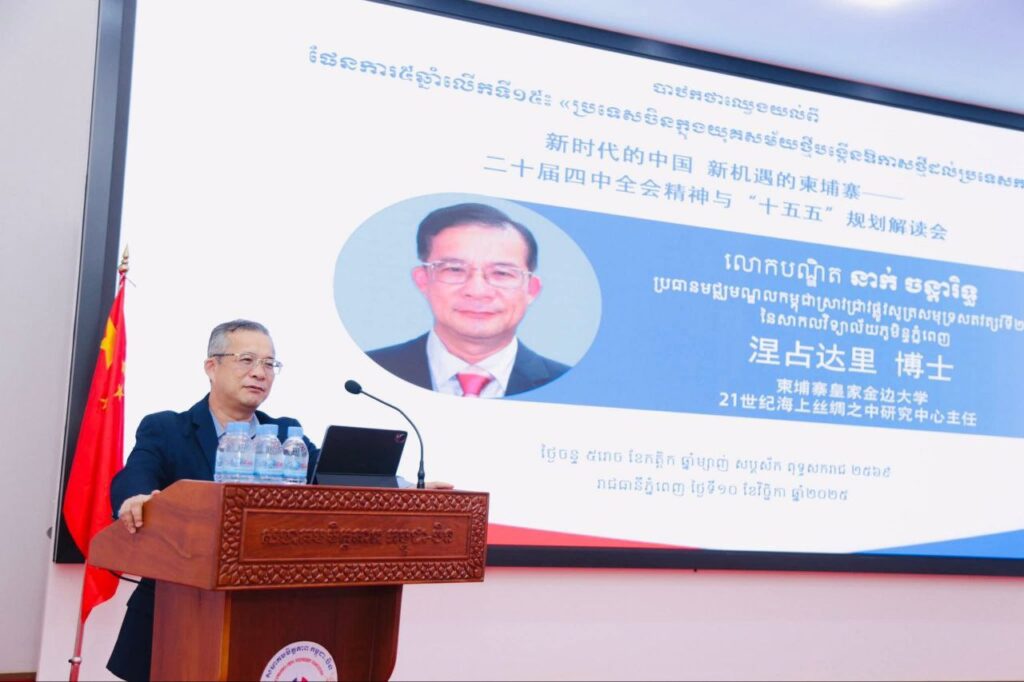 (ភ្នំពេញ)៖ រសៀលថ្ងៃទី១០ ខែវិច្ឆិកា ឆ្នាំ២០២៥ នៅសមាគមមិត្តភាពកម្ពុជា-ចិន ក្រុមបញ្ញវន្តជាន់ខ្ពស់និងក្រុមអ្នកសារព័ត៌មាន កម្ពុជា-ចិន ៦រូប បានរួមគ្នារៀបចំបាឋកថាឈ្វេងយល់ពី «ផែនការ ៥ឆ្នាំលើកទី១៥ ៖ ប្រទេសចិនក្នុងយុគសម័យថ្មី បង្កើតឱកាសថ្មីដល់ប្រទេសកម្ពុជា»។