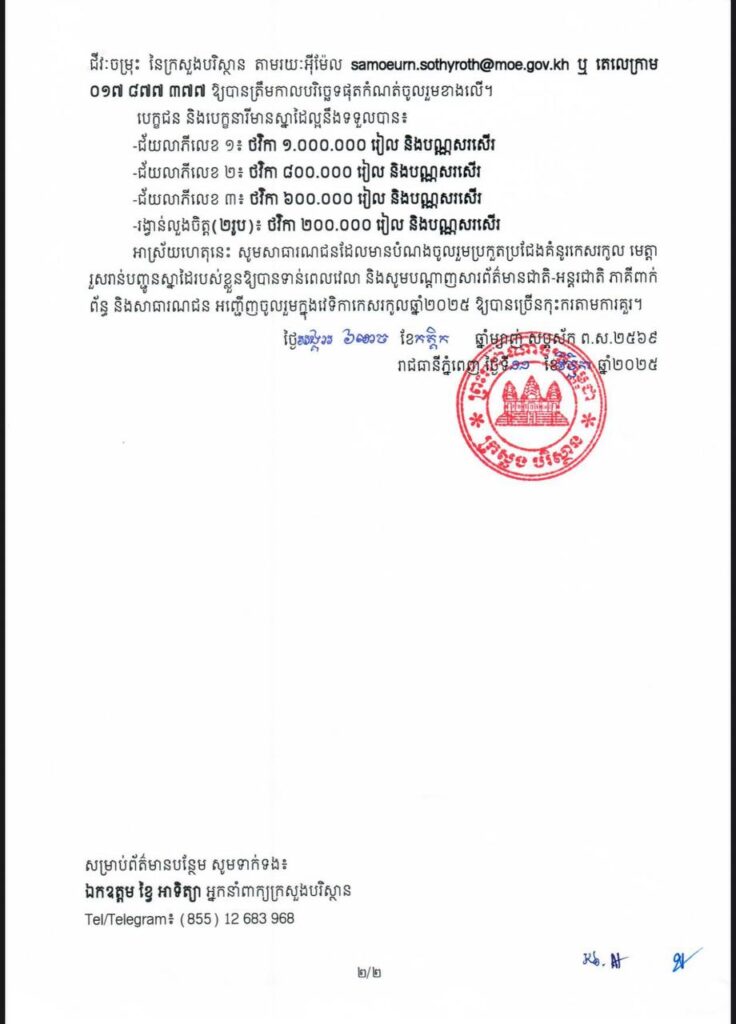 អាស្រ័យហេតុនេះ សូមសាធារណជនដែលមានបំណងចូលរួមប្រកួតប្រជែងគំនូរកេសរកូល សូមមេត្តាបញ្ជូនស្នាដៃរបស់ខ្លួនឱ្យបានទាន់ពេលវេលា និងសូមបណ្តាញសារព័ត៌មានជាតិ-អន្តរជាតិ ភាគីពាក់ព័ន្ធ និងសាធារណជន អញ្ជើញចូលរួមក្នុងវេទិកាកេសរកូលឆ្នាំ២០២៥ ឱ្យបានច្រើនកុះករតាមការគួរ៕