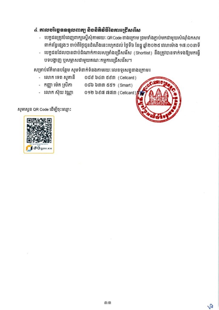 ៤. កាលបរិច្ឆេទទទួលពាក្យ និងនិតិវិធីនៃការជ្រើសរើស