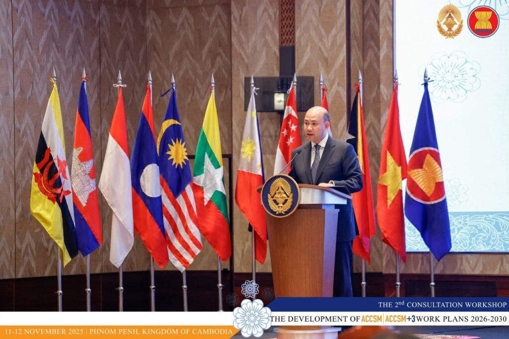 ទាក់ទងនឹងដំណើរការនៃការកសាងផែនការការងារ ACCSM និង ACCSM+3 ឆ្នាំ២០២៦-២០៣០ ឯកឧត្តមបានលើកឡើងថានេះគឺជាផែនការលើកទី៤របស់យើងសម្រាប់បរិបទថ្មី ក្នុងការកសម្រេចចក្ខុវិស័យសហគមអាស៊ានឆ្នាំ២០៤៥។”