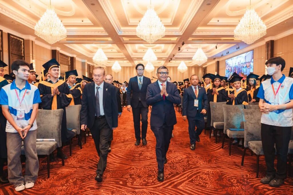 ជាថ្មីម្តងទៀត តាងនាមក្រសួងអប់រំ យុវជន និងកីឡា ឯកឧត្តមបណ្ឌិតសភាចារ្យ ឧបនាយករដ្ឋមន្ត្រី បានអបអរសាទរ និងលើកទឹកចិត្តឱ្យនិស្សិតទាំងអស់ ត្រូវខិតខំធ្វើការងារ សិក្សារៀនសូត្របន្ថែមទៀត និងប្រកបមុខរបរចិញ្ចឹមជីវិតដោយសុខដុមរមន ជាពិសេស ក្នុងបរិបទពិភពលោកដែលកំពុងផ្លាស់ប្តូរ និស្សិតត្រូវចេះប្រើប្រាស់បញ្ញាសិប្បនិម្មិត (AI) ឱ្យមានប្រសិទ្ធភាព ស្វែងរកឱកាសការងារត្រឹមត្រូវ និងបង្កើនជំនាញដែលទីផ្សារត្រូវការ ដើម្បីចូលរួមចំណែកយ៉ាងសកម្មក្នុងការលើកកម្ពស់ និងកសាងសេដ្ឋកិច្ចជាតិ ឆ្លើយតបនឹងចក្ខុវិស័យរបស់រាជរដ្ឋាភិបាល។