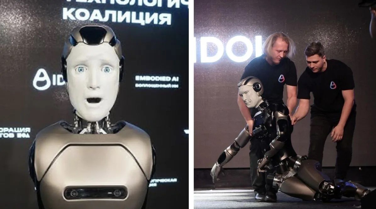 មនុស្សយន្ត AI ដំបូងរបស់រុស្ស៊ីភ្លាត់ស្នៀតដួលបែកខ្ទេចខ្ទីនៅលើឆាក