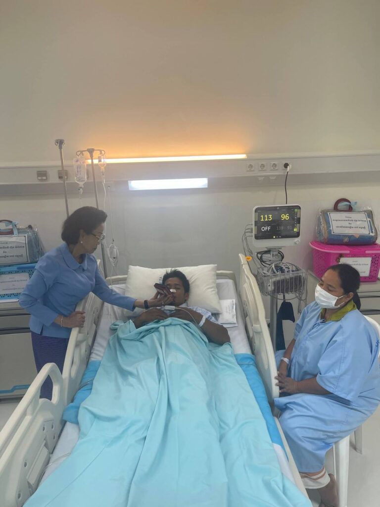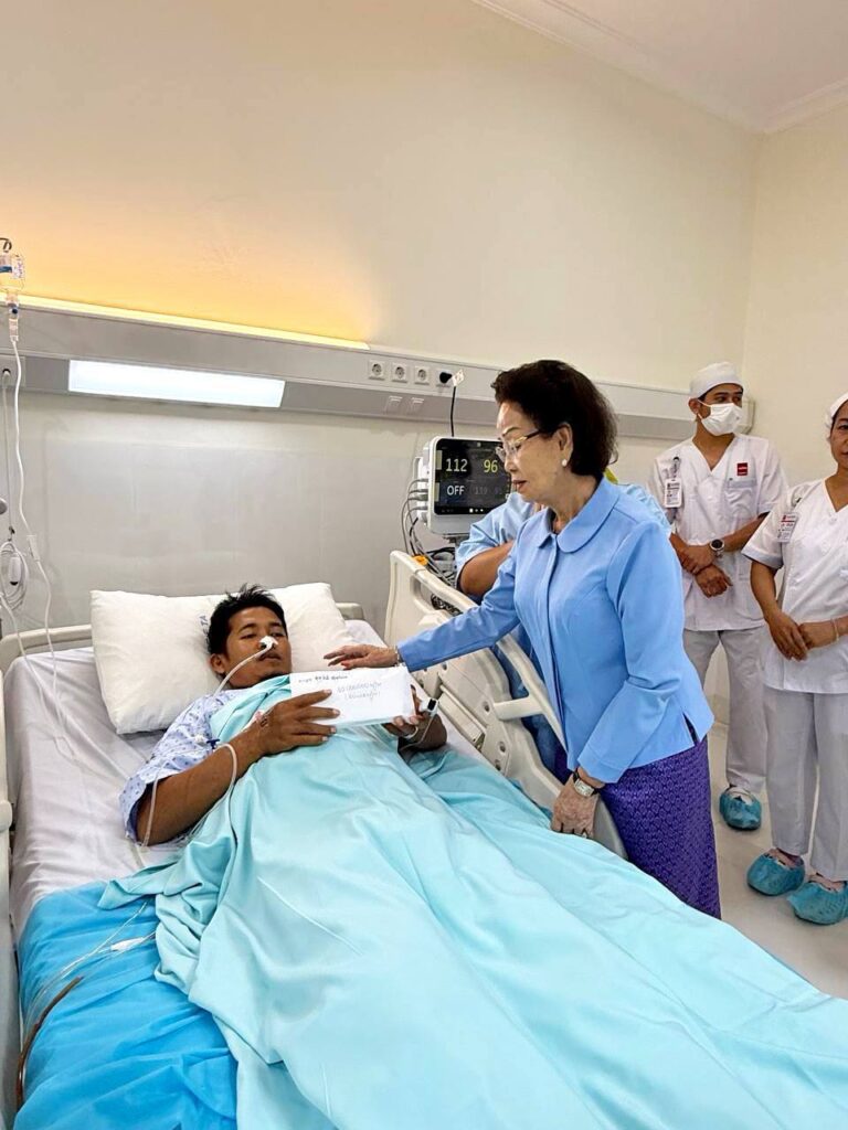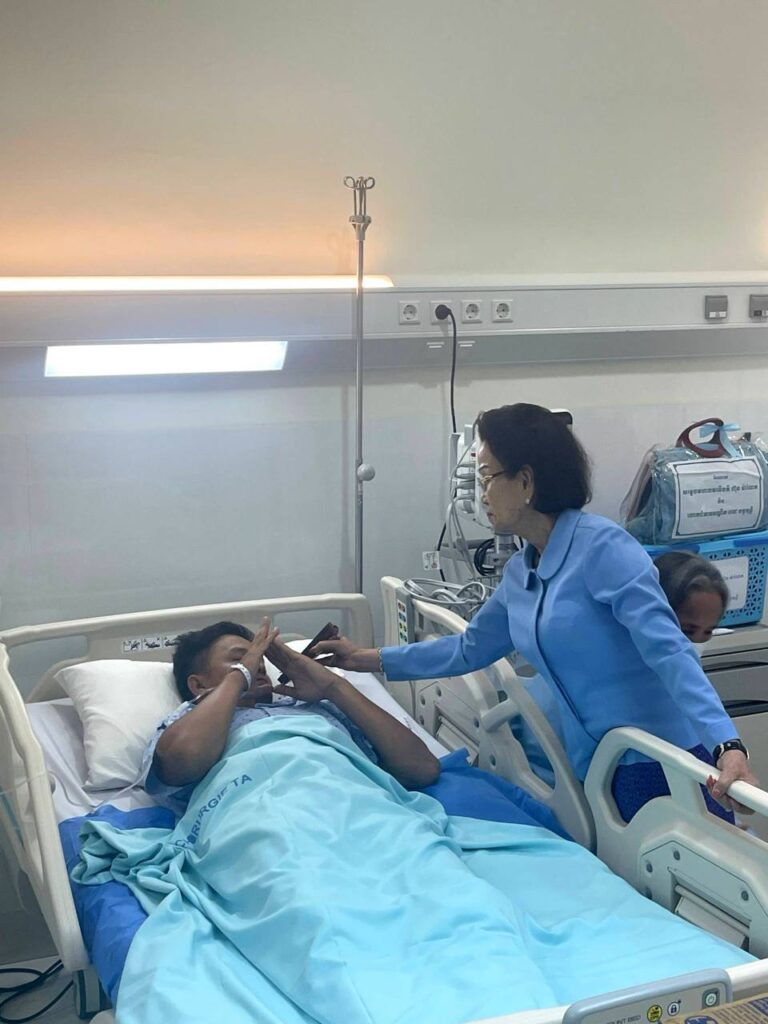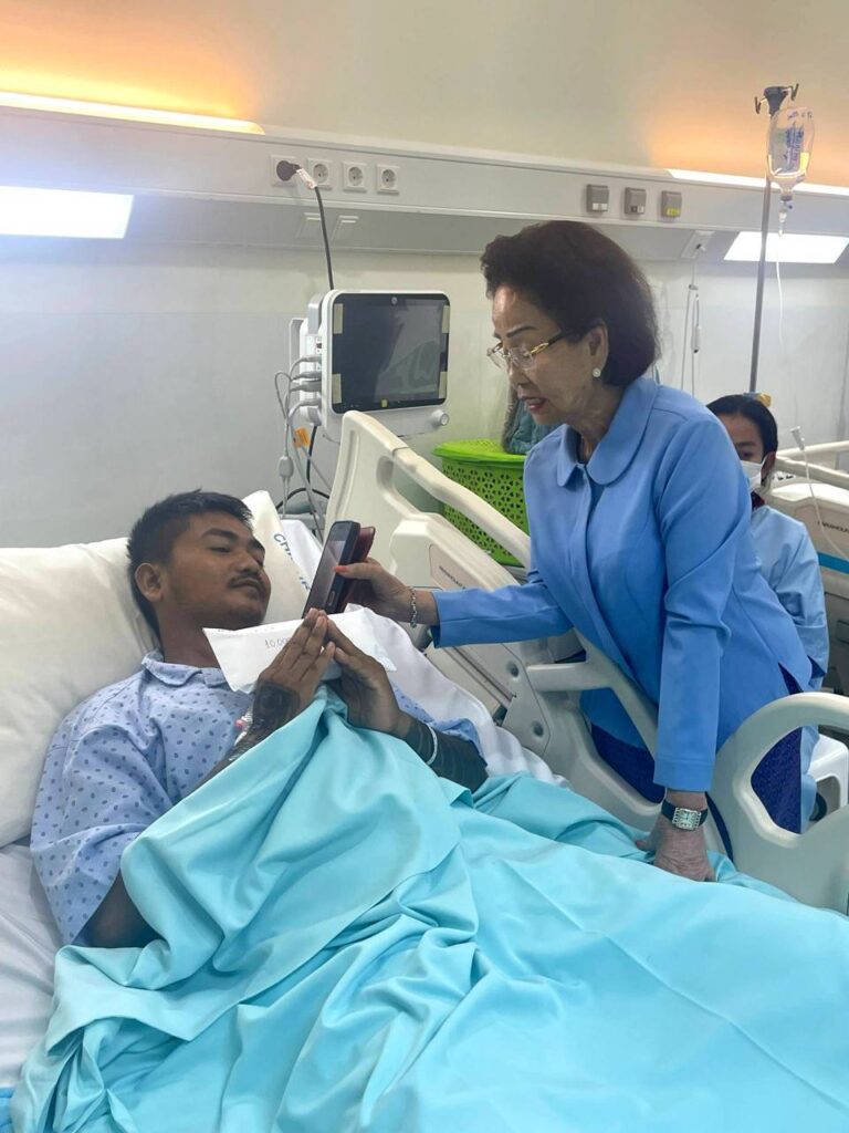 សម្ដេចកិត្ដិព្រឹទ្ធបណ្ឌិត ប៊ុន រ៉ានី ហ៊ុនសែន ជួបសំណេះសំណាលតាមទូរស័ព្ទ ជាមួយពលរដ្ឋរងគ្រោះដោយ ទាហានថៃបាញ់ប្រហារ កំពុងសម្រាកព្យាបាលនៅមន្ទីរពេទ្យកាល់ម៉ែត