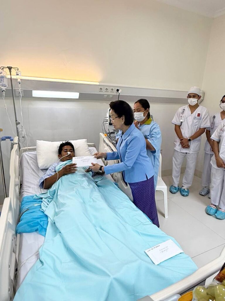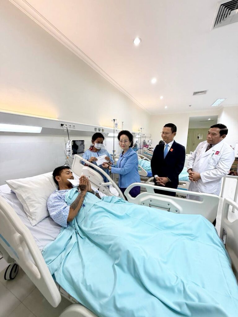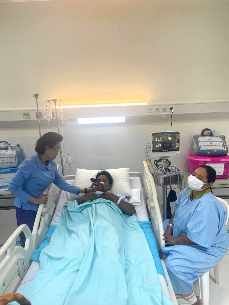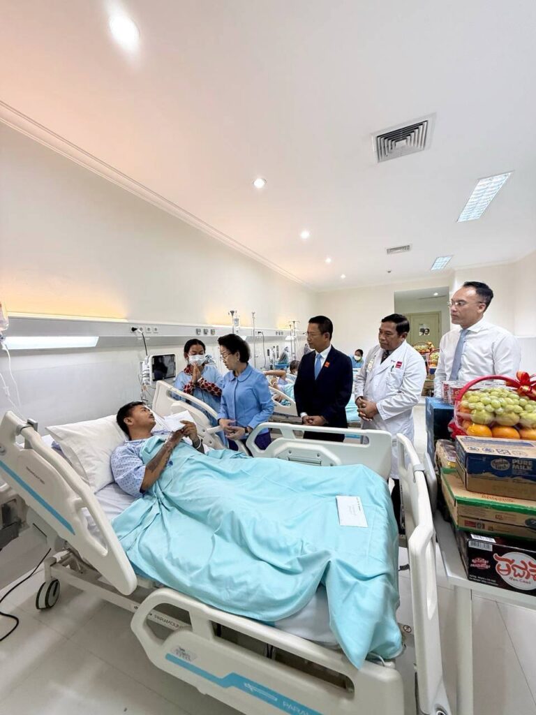 សម្ដេចកិត្ដិព្រឹទ្ធបណ្ឌិត ប៊ុន រ៉ានី ហ៊ុនសែន ជួបសំណេះសំណាលតាមទូរស័ព្ទ ជាមួយពលរដ្ឋរងគ្រោះដោយ ទាហានថៃបាញ់ប្រហារ កំពុងសម្រាកព្យាបាលនៅមន្ទីរពេទ្យកាល់ម៉ែត