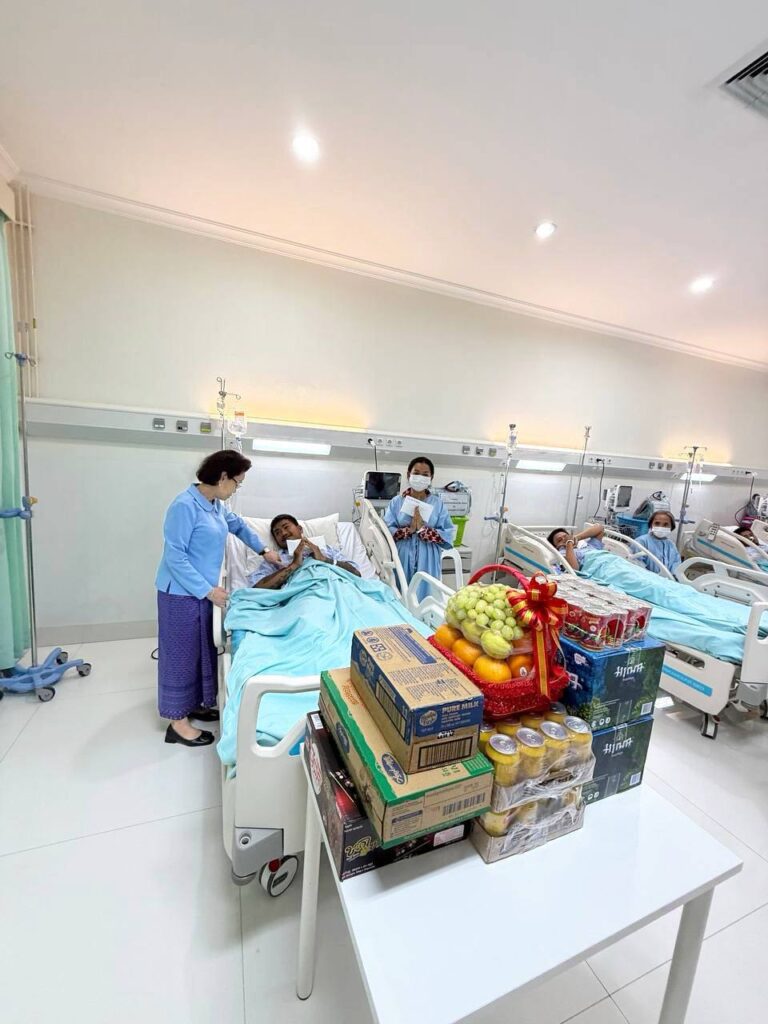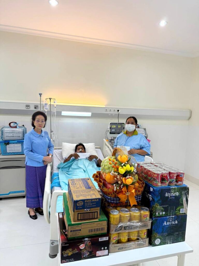 (ភ្នំពេញ)៖ សម្ដេចកិត្ដិព្រឹទ្ធបណ្ឌិត ប៊ុន រ៉ានី ហ៊ុនសែន ប្រធានកាកបាទក្រហមកម្ពុជា នារសៀលថ្ងៃទី១៤ ខែ វិច្ឆិកា ឆ្នាំ២០២៥ បានចាត់ថ្នាក់ដឹកនាំចុះសួរសុខទុក្ខ និងសំណេះសំណាលតាមទូរស័ព្ទជាមួយពលរដ្ឋខ្មែរស្លូតត្រង់ចំនួន ៣រូប ដែលបានរងរបួសដោយការបាញ់ ប្រ ហារពីយោធាថៃនៅភូមិព្រៃចាន់ ដែលកំពុងព្យាបាល យ៉ាងយកចិត្ដទុកដាក់ពីក្រុមគ្រូពេទ្យនៅមន្ទីរពេទ្យកាល់ម៉ែត និងនាំយកថវិកា និងគ្រឿងឧបភោគ-បរិភោគមួយចំនួនធំផ្តល់ជូនផងដែរ។