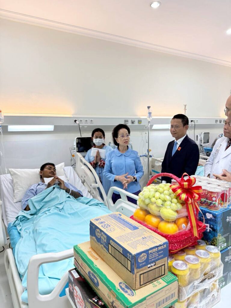 តាមរយៈលោកជំទាវបណ្ឌិត អ៊ុក ម៉ាលី សមាជិកាព្រឹទ្ធសភាមណ្ឌលភូមិភាគ២ អ្នកម្ដាយមនុស្សធម៌ បានជួបសំណេះសំណាលសួរសុខទុក្ខដោយផ្ទាល់តាមទូរស័ព្ទ ជាមួយពលរដ្ឋរងគ្រោះទាំង៣រូប, ដោយអ្នកម្ដាយដ៏កក់ក្ដៅ បានសួរនាំពីសុខភាព ស្ថានភាពគ្រួសារ និងជូនពរដល់ប្រជាពលរដ្ឋដ៏ស្លូតត្រង់ ដ៏គួរអាសូរទាំង ៣រូបនេះ ឱ្យឆាប់ជាសះស្បើយ ពិសេសបានលើកទឹកចិត្ដដល់ពលរដ្ឋដែលរងគ្រោះនេះ សូមសម្រាកព្យាបាលឱ្យបានប្រសើរឡើងវិញ ដោយកុំមានការព្រួយអ្វីទាំងអស់ទៅលើការព្យាបាល សូមទុកចិត្ដលើក្រុមគ្រូពេទ្យយើងដែលកំពុងបម្រើសេវាសុខាភិបាលជូនយ៉ាងយកចិត្ដទុកដាក់បំផុត។