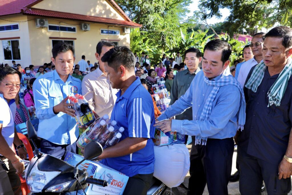 អភិបាលខេត្តកំពង់ចាមនាំយកអំណោយសម្ដេចធិបតីទៅផ្តល់ជូនប្រជាពលរដ្ឋរងគ្រោះដោយសារទឹកជំនន់១៥៤គ្រួសារ នៅស្រុកស្ទឹងត្រង់