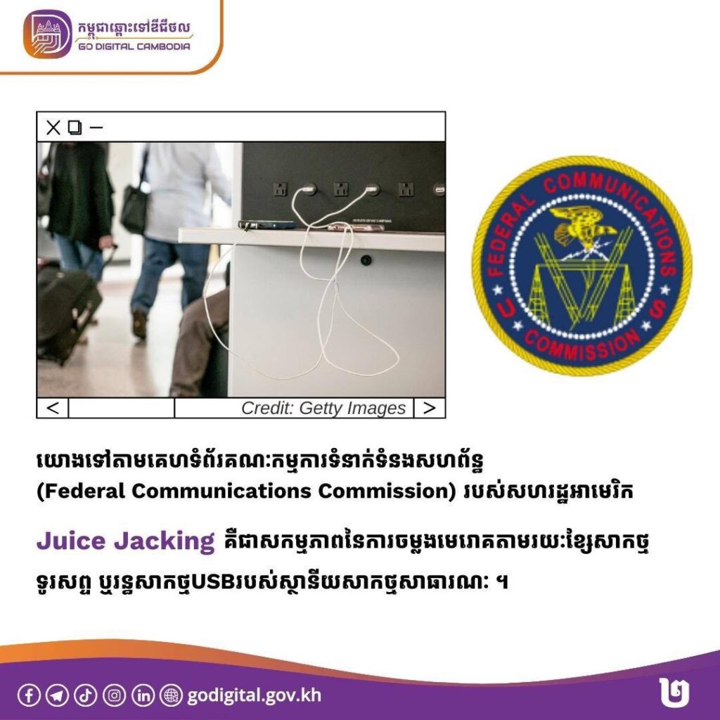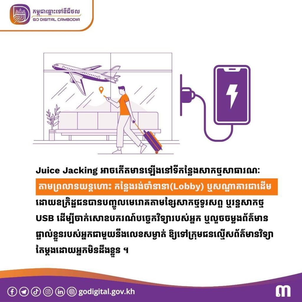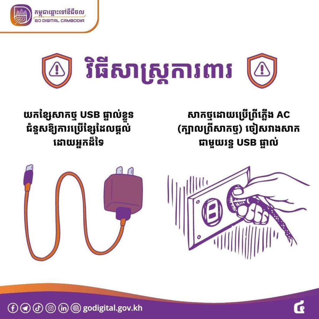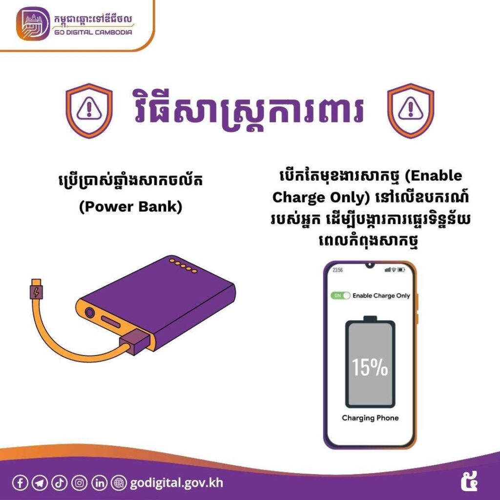 (ភ្នំពេញ)៖ សាកថ្មនៅសាធារណៈក៏អាចប្រឈមនឹងហានិភ័យនៃការឆ្លងមេរោគចូលទូរសព្ទដែរ! បើការសាកថ្មនោះធ្វើឡើងដោយមិនត្រឹមត្រូវ
