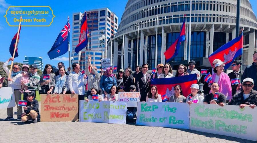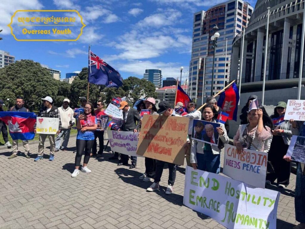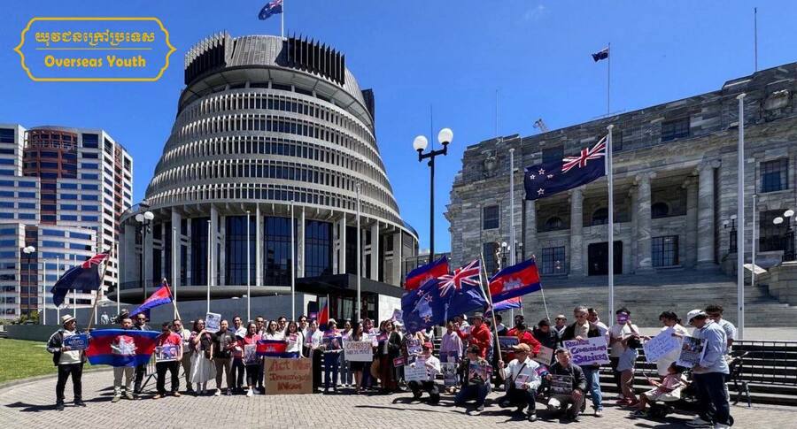 (រដ្ឋធានីវ៉ែល្លីងតុន ប្រទេសនូវ៉ែលហ្សេឡង់) នៅរសៀលថ្ងៃអាទិត្យ ទី១៦ ខែវិច្ឆិកា ឆ្នាំ២០២៥ ប្រជាពលរដ្ឋខ្មែររស់នៅក្នុងរដ្ឋធានីវ៉ែល្លីងតុន ទីក្រុងក្រៃឈើច ទីក្រុងផាមើស្តុនណតស៍ ប្រទេសនូវ៉ែលហ្សេឡង់ ប្រមាណជាង២០០នាក់ បានជួបជុំគ្នានៅមុខរដ្ឋសភារដ្ឋធានីវ៉ែល្លីងតុន ប្រទេសនូវ៉ែលហ្សេឡង់ ដើម្បីប្រកាសថ្កោលទោសយ៉ាងដាច់អហង្ការ ចំពោះទង្វើបាញ់ប្រហារបង្កដោយភាគីថៃ មកលើពលរដ្ឋខ្មែរ នៅភូមិព្រៃចាន់ ឃុំអូរបីជាន់ ស្រុកអូរជ្រៅ ខេត្តបន្ទាយមានជ័យ បណ្ដាលឱ្យពលរដ្ឋខ្មែរម្នាក់ស្លាប់បាត់បង់ជីវិត និង៣នាក់រងរបួស និងដើម្បី៖