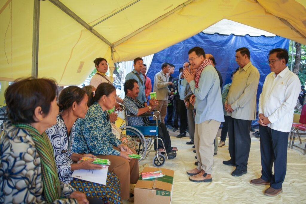 (ខេត្តបន្ទាយមានជ័យ)៖ ឯកឧត្តម ឌិត ទីណា រដ្ឋមន្រ្តីក្រសួងកសិកម្ម រុក្ខាប្រមាញ់ និងនេសាទ និងជាប្រធានក្រុមការងាររាជរដ្ឋាភិបាលចុះមូលដ្ឋានខេត្តបន្ទាយមានជ័យ កាលពីថ្ងៃទី១៦ ខែវិច្ឆិកា ឆ្នាំ២០២៥ បានអញើញអមដំណើរគណៈប្រតិភូព្រឹទ្ធសភាដឹកនាំដោយឯកឧត្តម ប៉ុល លឹម ប្រធានក្រុមសមាជិកព្រឹទ្ធសភាប្រចាំភូមិភាគទី៤ និងតំណាង ឯកឧត្តមបណ្ឌិត ធន់ វឌ្ឍនា អនុប្រធានទី២ នៃព្រឹទ្ធសភា ដែលបានសហការជាមួយក្រុមគ្រូពេទ្យស្ម័គ្រចិត្តរបស់សមាគមបេសកកម្មមនុស្សធម៌ នៃប្រទេសបារាំងប្រចាំកម្ពុជា ចុះធ្វើការពិនិត្យនិងព្យាបាលជំងឺដោយឥតគិតកម្រៃជូនពុកម៉ែបងប្អូន និងក្មួយៗ ជាជនភៀសសឹកពីភូមិព្រៃចាន់ និងភូមិជោគជ័យ នៅទីតាំងសុវត្ថិភាពស្រុកអូរជ្រៅ ខេត្តបន្ទាយមានជ័យ។