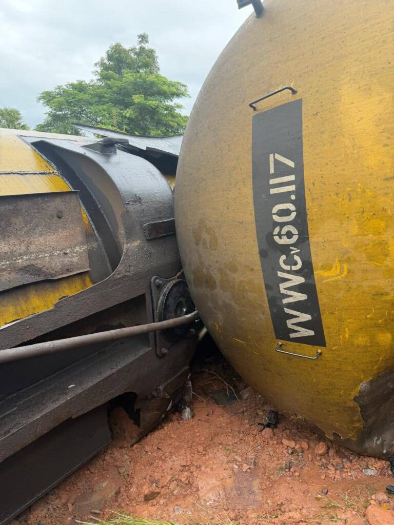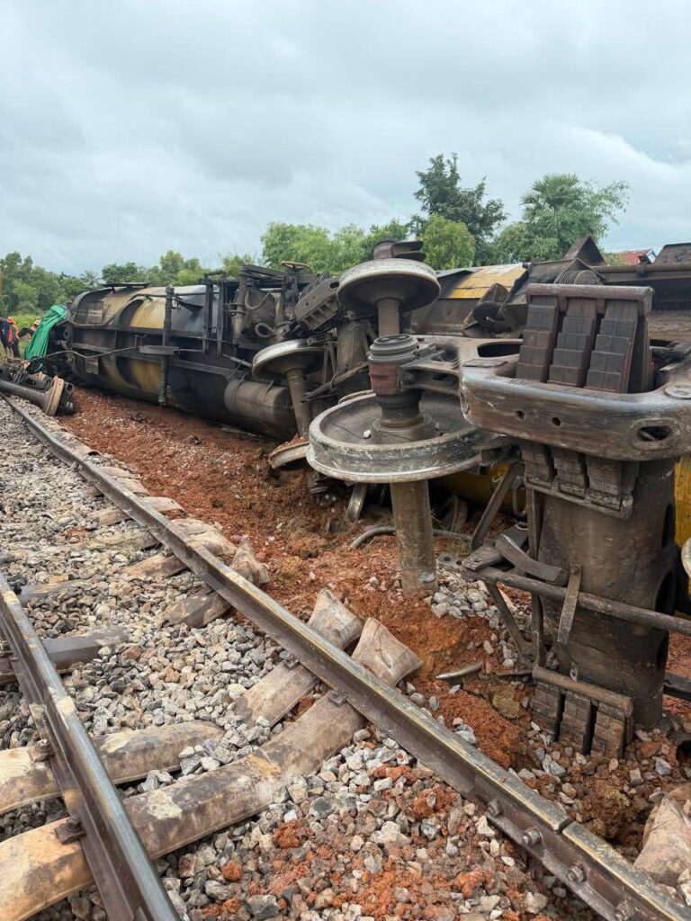 រថភ្លើងដឹកប្រេងបានក្រឡាប់នៅស្រុកបាកាន ខេត្តពោធិ៍សាត់ បណ្តាលឱ្យធ្លាក់ទូរប្រេងចំនួន ៣ ទូរ