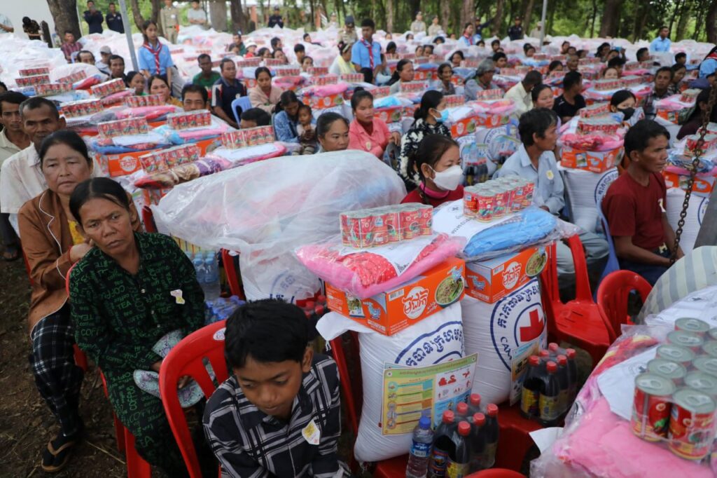 សូមបញ្ជាក់ថា គ្រួសារនីមួយៗទទួលបានអំណោយរួមមាន៖ អង្ករ ៣០គីឡូក្រាម, មី ១កេស, ត្រីខ ១០កំប៉ុង, ទឹកស៊ីអ៊ីវ ៦ដប និងឃីត (មុង ភួយ សារុង ក្រមា) ១កញ្ចប់ ៕
