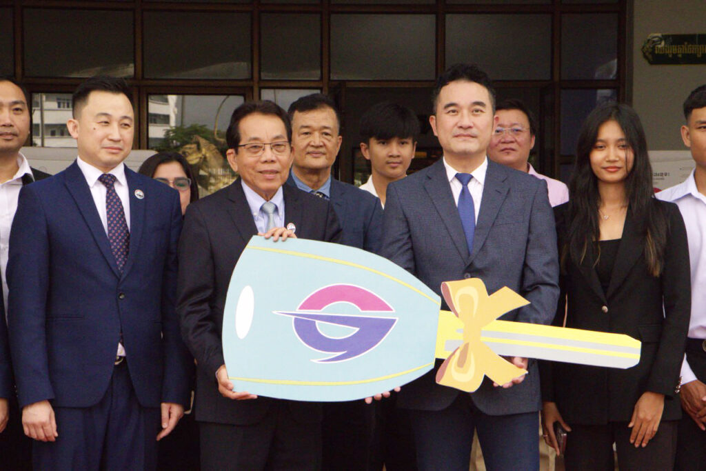 (ភ្នំពេញ)៖ ក្រសួងពាណិជ្ជកម្មកម្ពុជា បានទទួលអំណោយយានជំនិះអគ្គិសនីពីវិនិយោគិនចិននៅកម្ពុជា ដែលបានប្តេជ្ញាចិត្តយ៉ាងមុតមាំ ក្នុងការចាប់ដៃជាមួយកម្ពុជា រួមគ្នាលើកកម្ពស់ការដឹកជញ្ជូនបៃតងនៅក្នុងប្រទេសកម្ពុជា។
