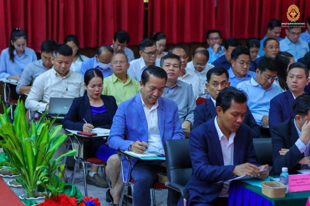 ទាក់ទងនឹងកិច្ចប្រជុំវិញ គឺដើម្បីពិនិត្យ និងពិភាក្សាលើស្ថានភាពទូទៅ និងដំណើរការនៃការធ្វើបច្ចុប្បន្នភាពរចនាសម្ព័ន្ធ និងជំរឿនមន្ត្រីជាក់ស្តែង ក៏ដូចជាកំណត់ការងារបន្តក្នុងការអនុវត្ត។នៅក្នុងកិច្ចប្រជុំនេះ មានការធ្វើបទបង្ហាញចំនួន២ របស់ថ្នាក់ដឹកនាំនៃក្រសួងមុខងារសាធារណៈ រួមមាន៖ បទបង្ហាញទី១. ដោយលោកជំទាវ ឈី វិជ្ជរ៉ា រដ្ឋលេខាធិការ ពាក់ព័ន្ធនឹងដំណើរការនៃការធ្វើជំរឿនរចនាសម្ព័ន្ធ និងមន្ត្រីជាក់ស្តែង ក៏ដូចជាបទពិសោធដែលបានអនុវត្ត នៅក្នុងការជំរឿននៅក្រសួងមុខងារសាធារណៈ និងបទបង្ហាញទី២. ដោយឯកឧត្តម យក់ ប៊ុនណា រដ្ឋលេខាធិការប្រចាំការ ពាក់ព័ន្ធនឹងការគិតគូរចំពោះមុខនាំឱ្យសម្រេចបាននូវកិច្ចការងារជំរឿនមន្ត្រីជាក់ស្តែង។