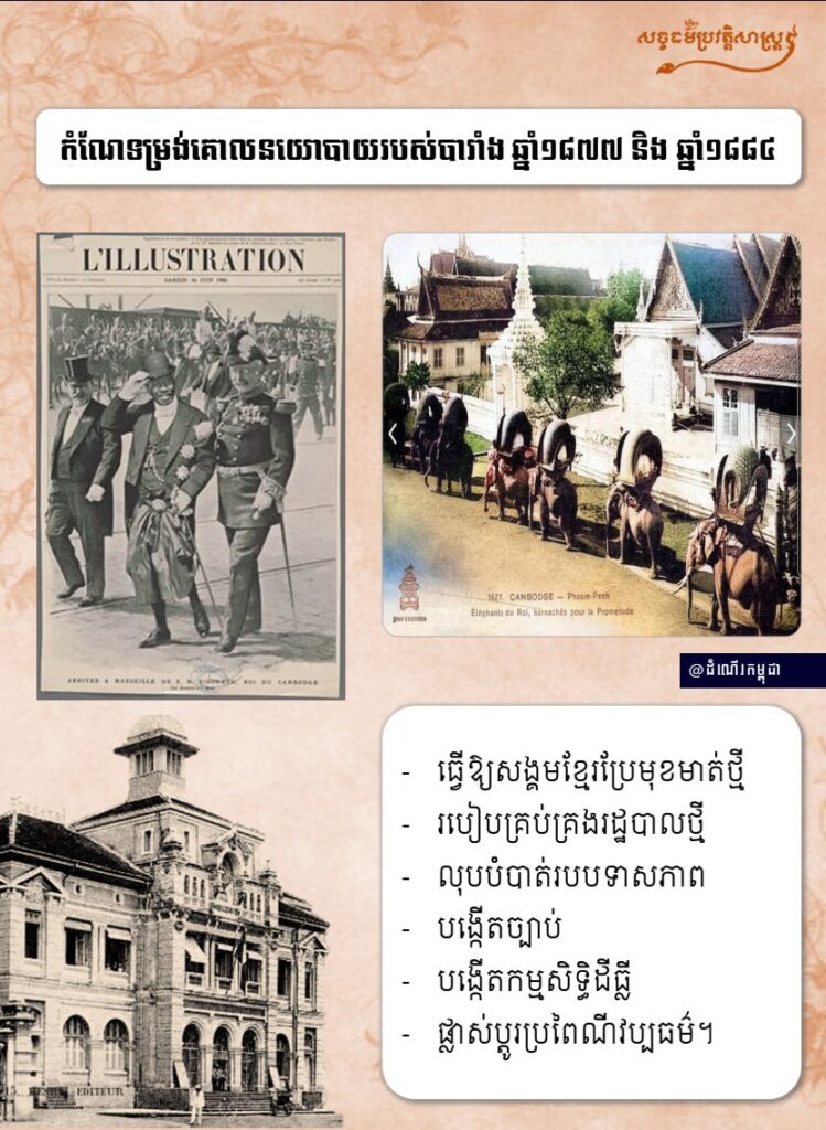 #សច្ចធម៌ប្រវត្ដិសាស្រ្ដ#ព្រះរាជាណាចក្រកម្ពុជា#ដំណើររបស់កម្ពុជា#កំណែទម្រង់គោលនយោបាយ#របស់បារំាង