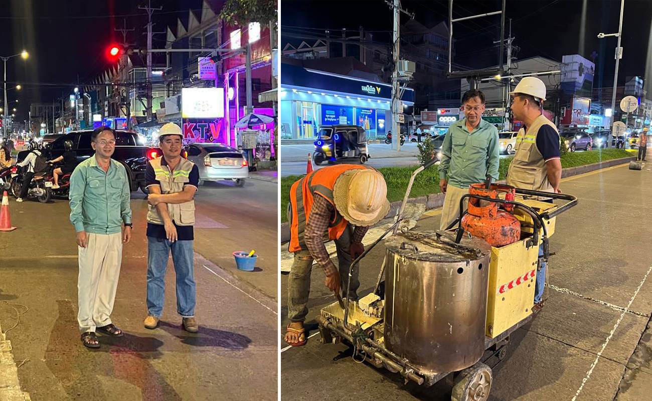 អភិបាលខណ្ឌសែនសុខ ចុះពិនិត្យការអ៊ុតគំនូសចរាចរណ៍ លើកំណាត់មហាវិថី ក្នុងសង្កាត់ភ្នំពេញថ្មី