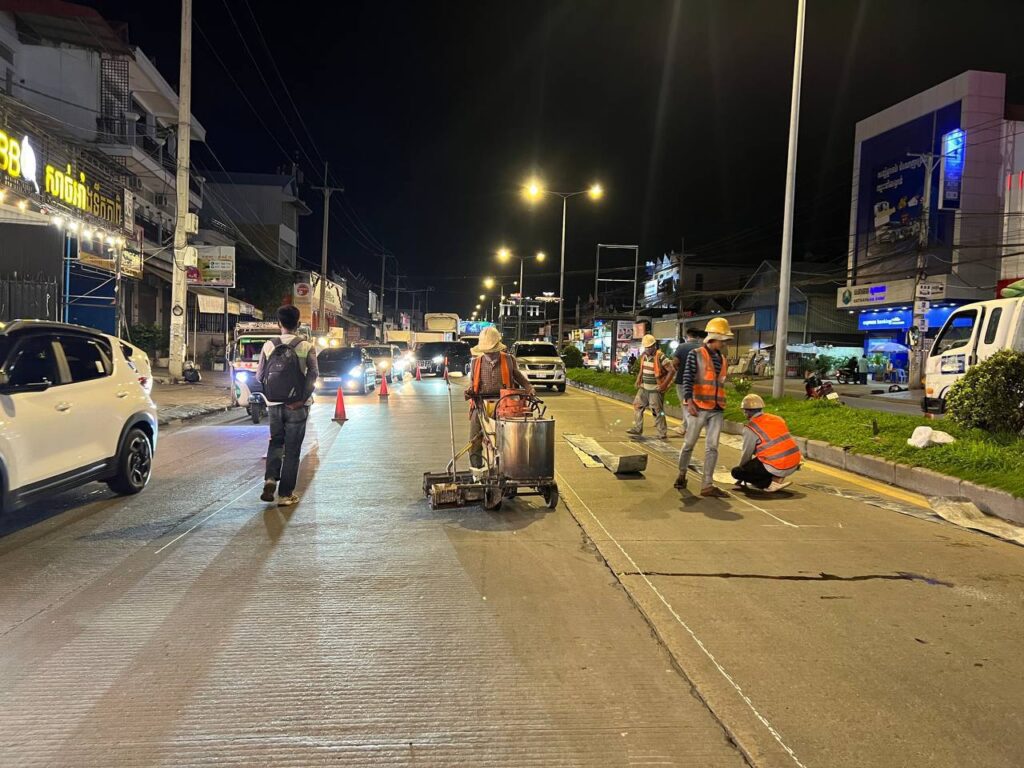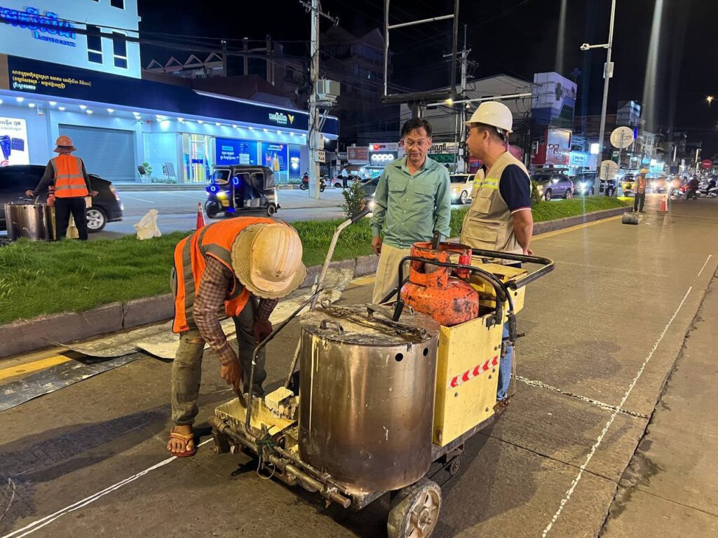 (ភ្នំពេញ)៖ លោក ចេង មុនីរ៉ា អភិបាល នៃគណៈអភិបាលខណ្ឌសែនសុខ សហការជាមួយ មន្ទីរសាធារណការ និងដឹកជញ្ជូនរាជធានីភ្នំពេញ ចុះពិនិត្យការអ៊ុតគំនូសចរាចរណ៍ នៅលើកំណាត់មហាវិថីលេខ១០១៩ (ភ្នំពេញ -ហាណូយ ) ក្នុងសង្កាត់ ភ្នំពេញថ្មី និងសង្កាត់គោកឃ្លាង ខណ្ឌសែនសុខ នៅយប់ថ្ងៃទី១៩ ខែវិច្ឆិកា ឆ្នាំ២០២៥ ដេីម្បីបង្កលក្ខណៈងាយស្រួល ជូនដល់ប្រជាពលរដ្ឋធ្វេីដំណេីរ ក្នុងមូលដ្ឋាន ។