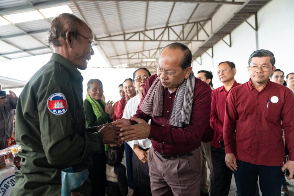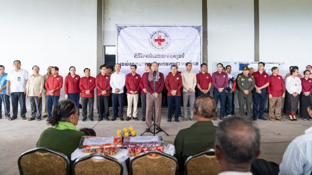 ក្នុងពិធីដែលរៀបចំឡើងនៅបរិវេណរោងម៉ាស៊ីនស្រូវគ្រីស្តារ៉ាយ សង្កាត់ព្រែកត្នោតកាលពីព្រឹកថ្ងៃទី២២ ខែវិច្ឆិកា ឆ្នាំ២០២៥ឯកឧត្តម ម៉ៅ ធនិន ប្រធានគណៈកម្មាធិការសាខាកាកបាទក្រហមកម្ពុជាខេត្តកំពត បាននាំយកការសាក