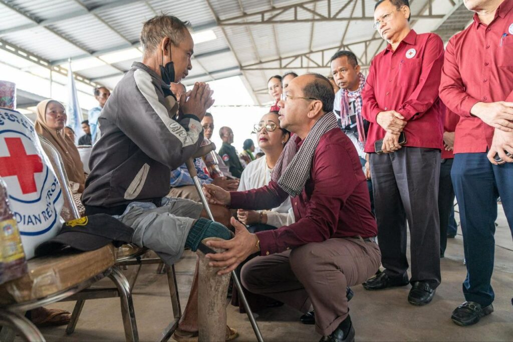 សួរសុខទុក្ខពីសម្ដេចកិត្តិព្រឹទ្ធបណ្ឌិត ប៊ុនរ៉ានី ហ៊ុន សែន ប្រធានកាកបាទក្រហមកម្ពុជា និងចូលរួមសម្តែងការសោកស្តាយចំពោះការខូចខាតផ្ទះសំបែង និងទ្រព្យសម្បត្តិដែលបង្កឡើងដោយគ្រោះធម្មជាតិ។ ឯកឧត្តមបញ្ជាក់ថា កាកបាទក្រហមកម្ពុជាធ្វើសកម្មភាពមនុស្សដោយគ្មានរើសអើង និងមិនដែលទុកប្រជាពលរដ្ឋណាម្នាក់ចោលឡើយ។